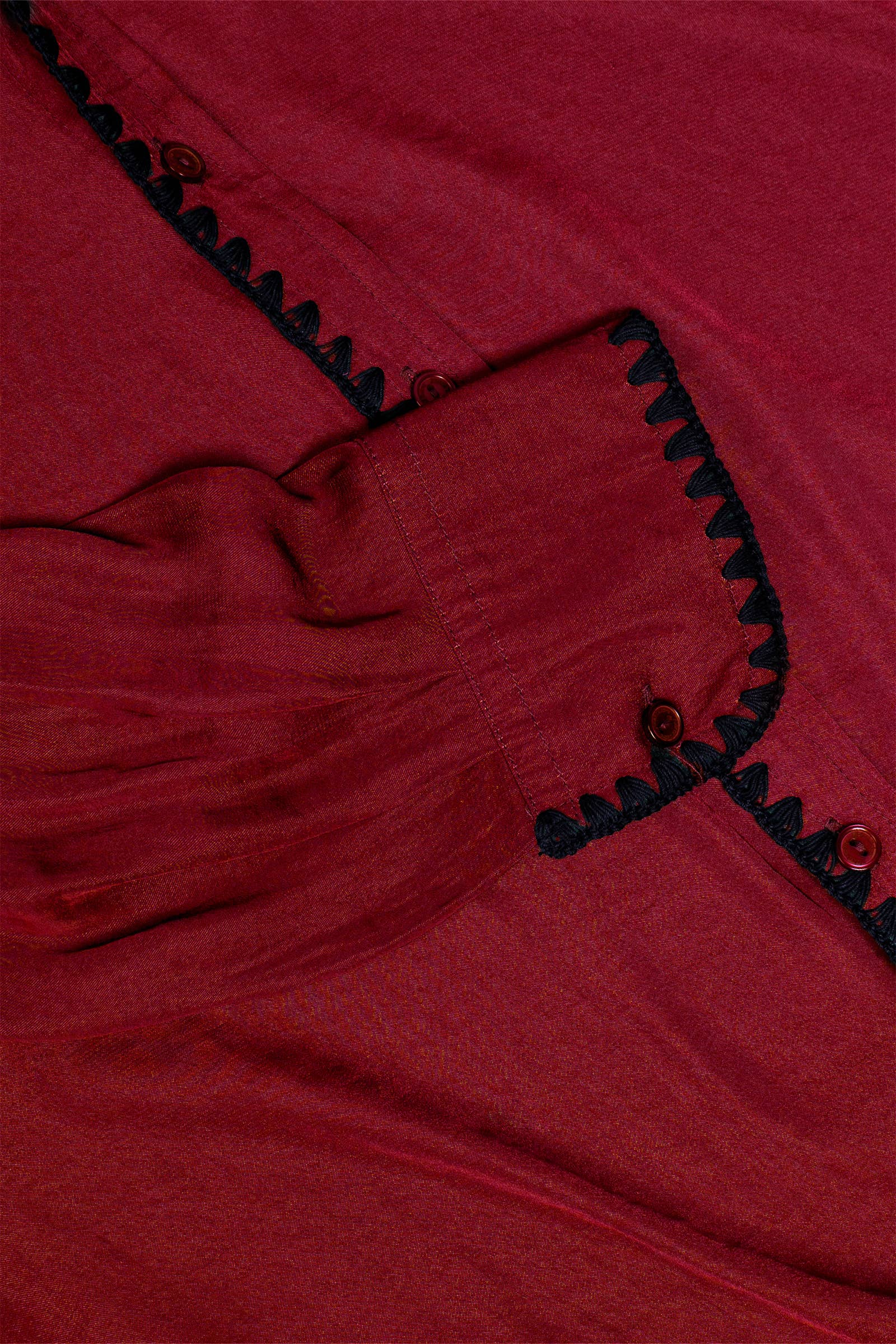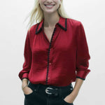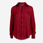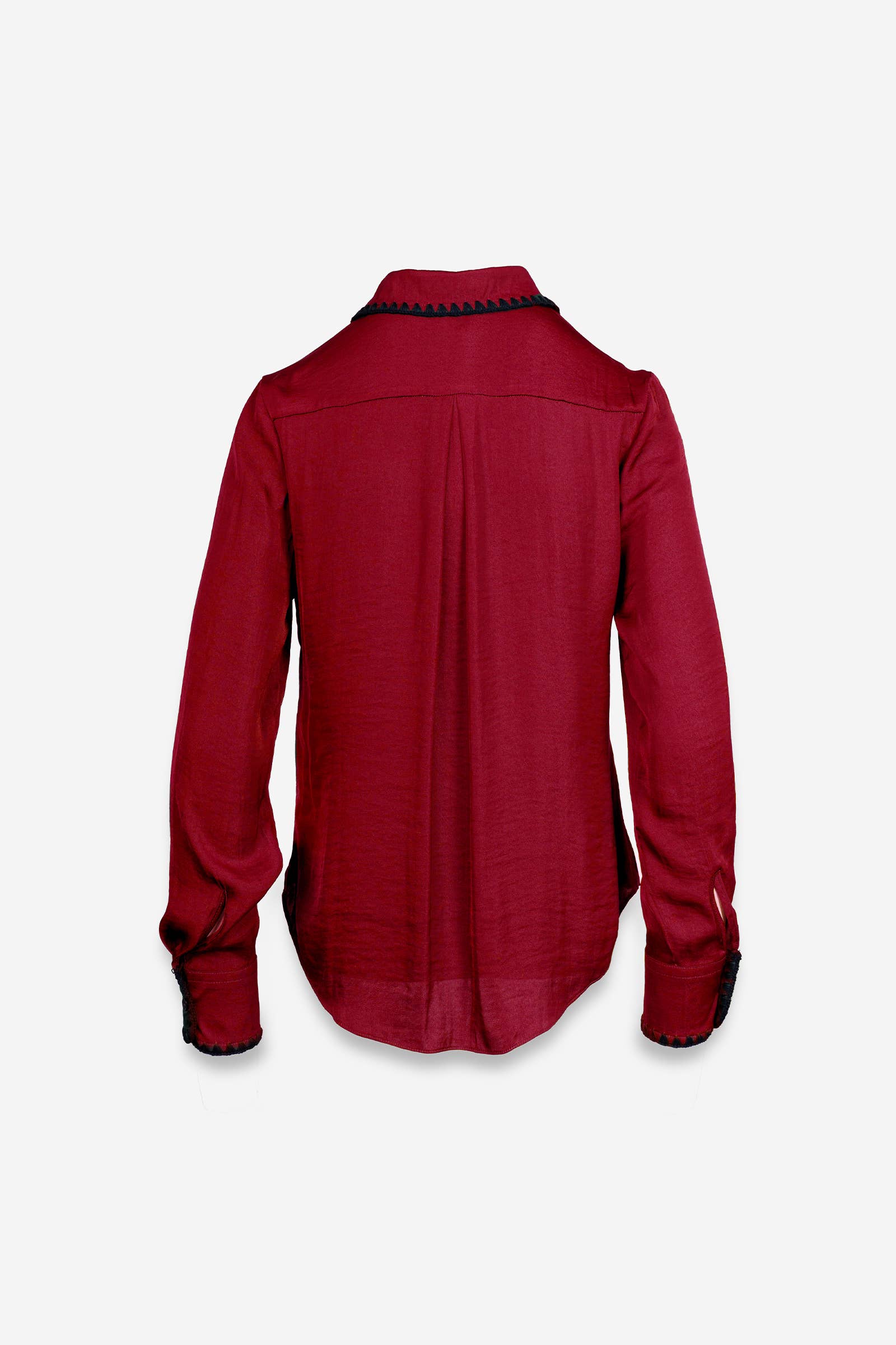 Dress to Impress Satin Button Down with a Blanket Stitch Detail in Red