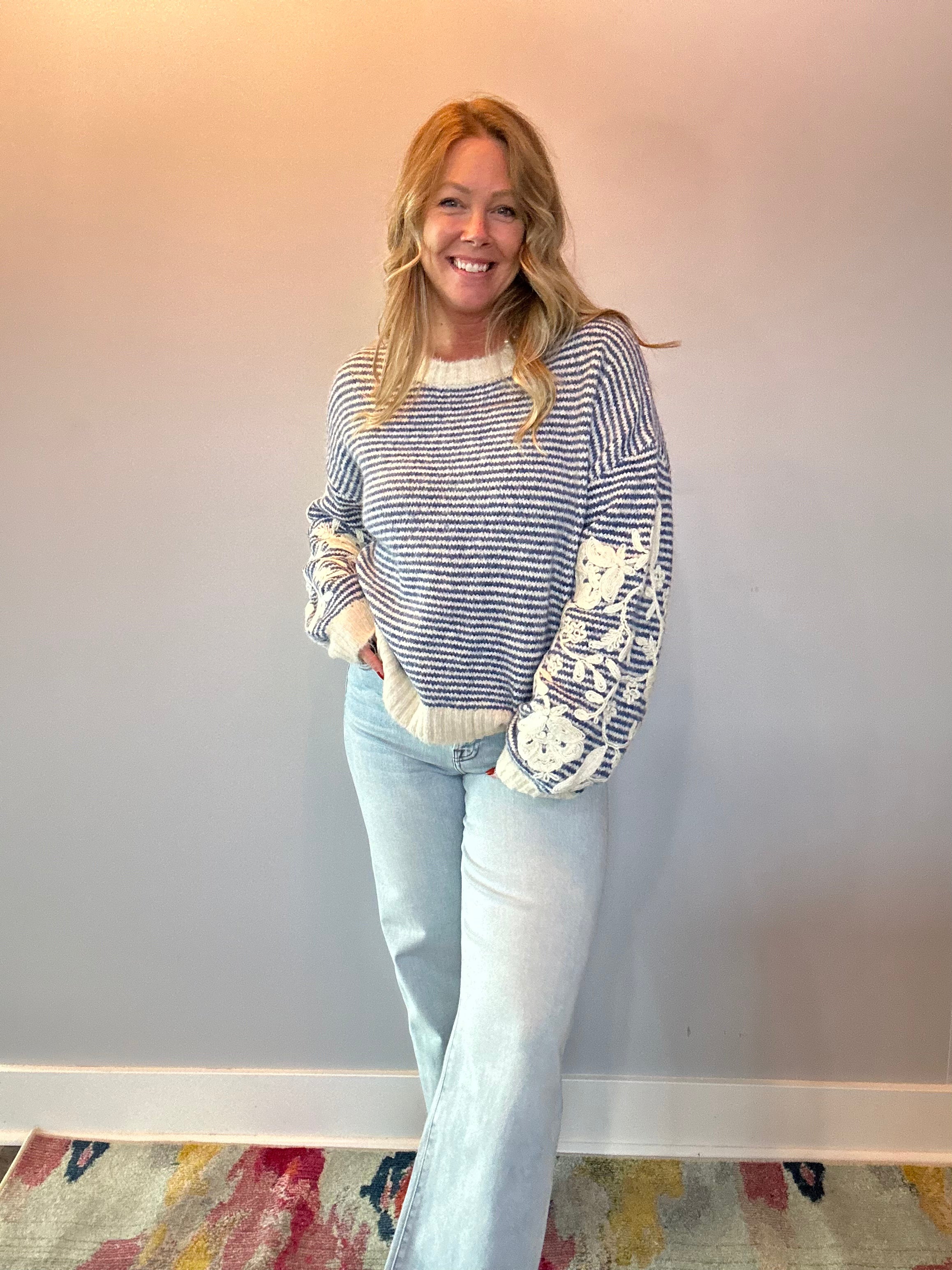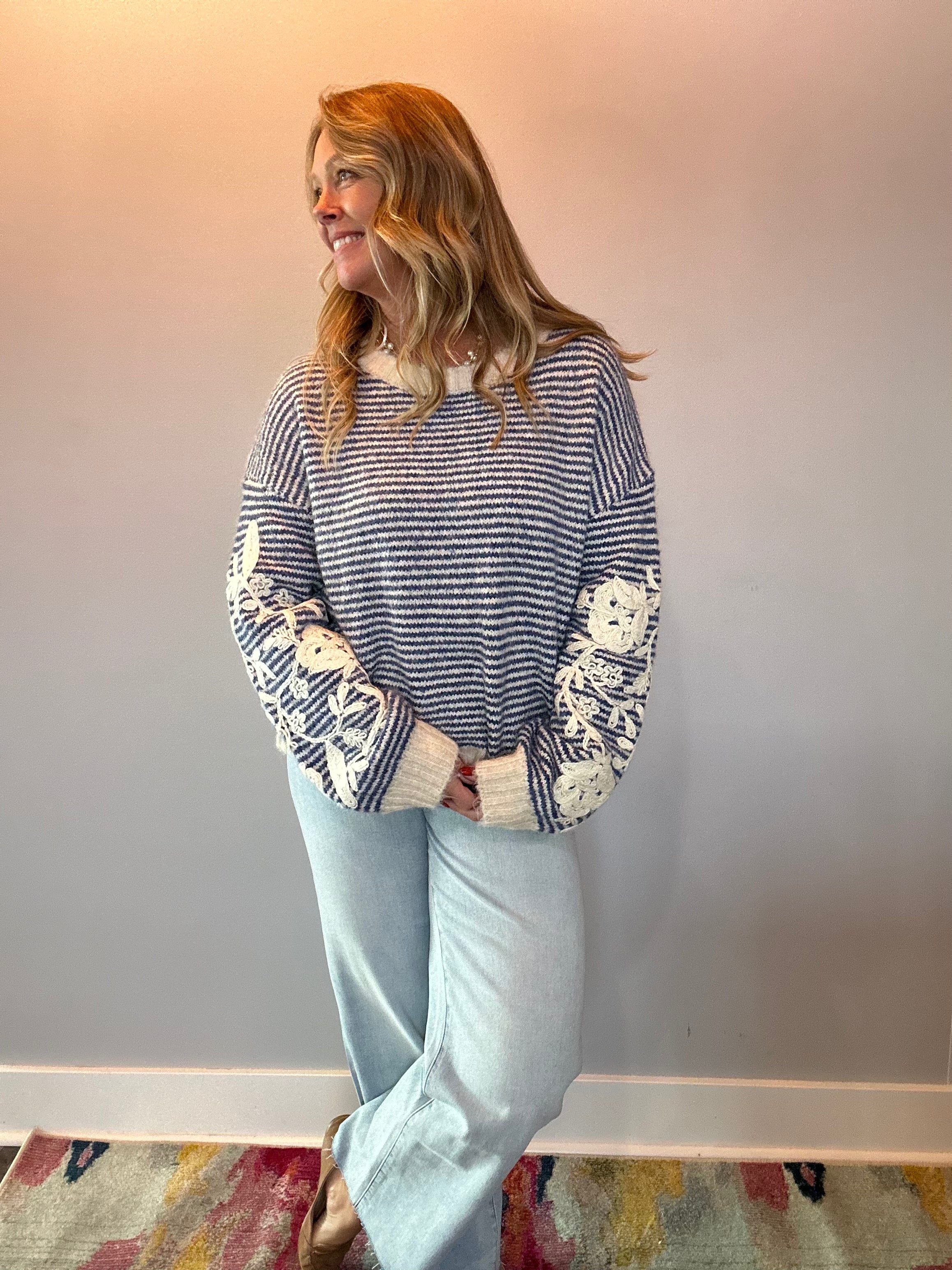Bloom & Stripe Embroidered Sweater Top