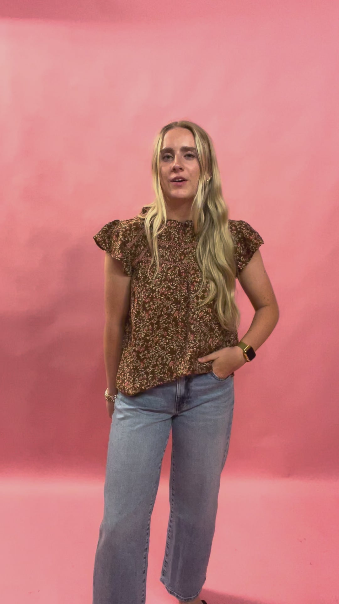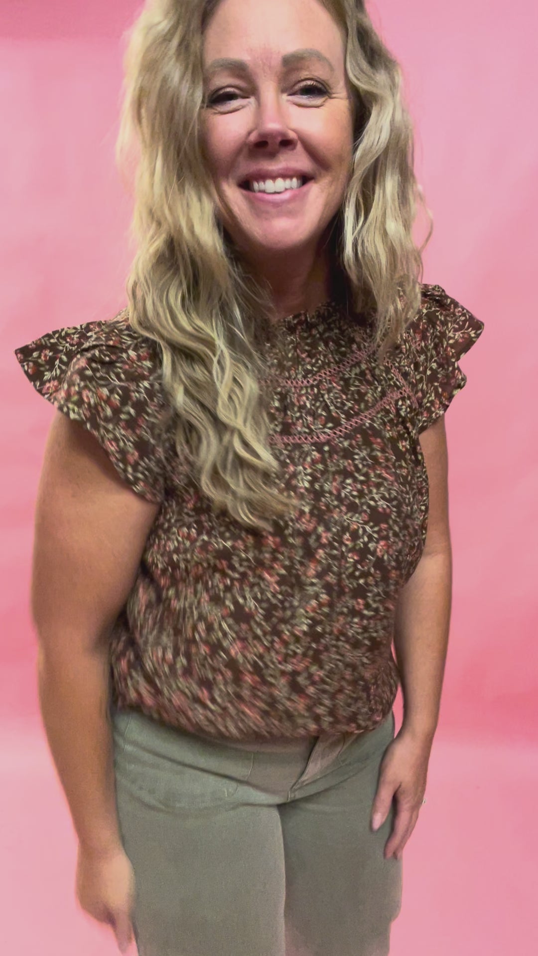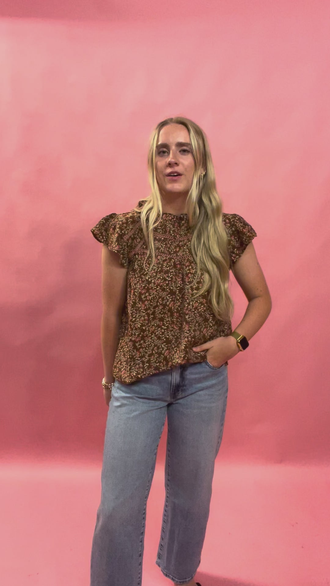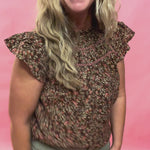 Romantic charm meets everyday ease in our Blushing Blooms Ruffle Lace Top. This relaxed-fit woven blouse features delicate floral fabric, a lace yoke trim, and ruffle details that add a soft, feminine touch. The large round neckline and back eye closure keep the look polished, while short ruffle sleeves add a playful twist.