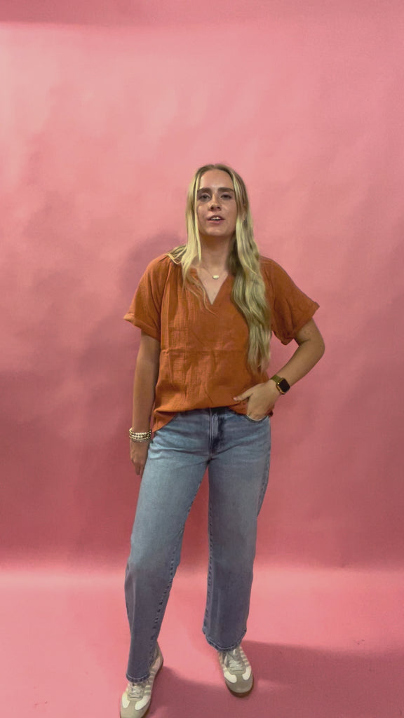 Light, airy, and effortlessly relaxed—the Breezy Days Cotton Gauze Top is your go-to for casual comfort with a touch of polish. Made from 100% breathable cotton, this top features cuffed short sleeves, side slit details, and a relaxed fit that drapes beautifully. Whether you’re heading out or staying in, this easygoing essential keeps you cool and comfortable all day long.