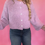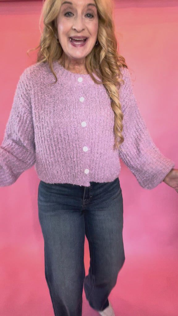 Buttoned Bliss Fluffy Knit Sweater in Pink
