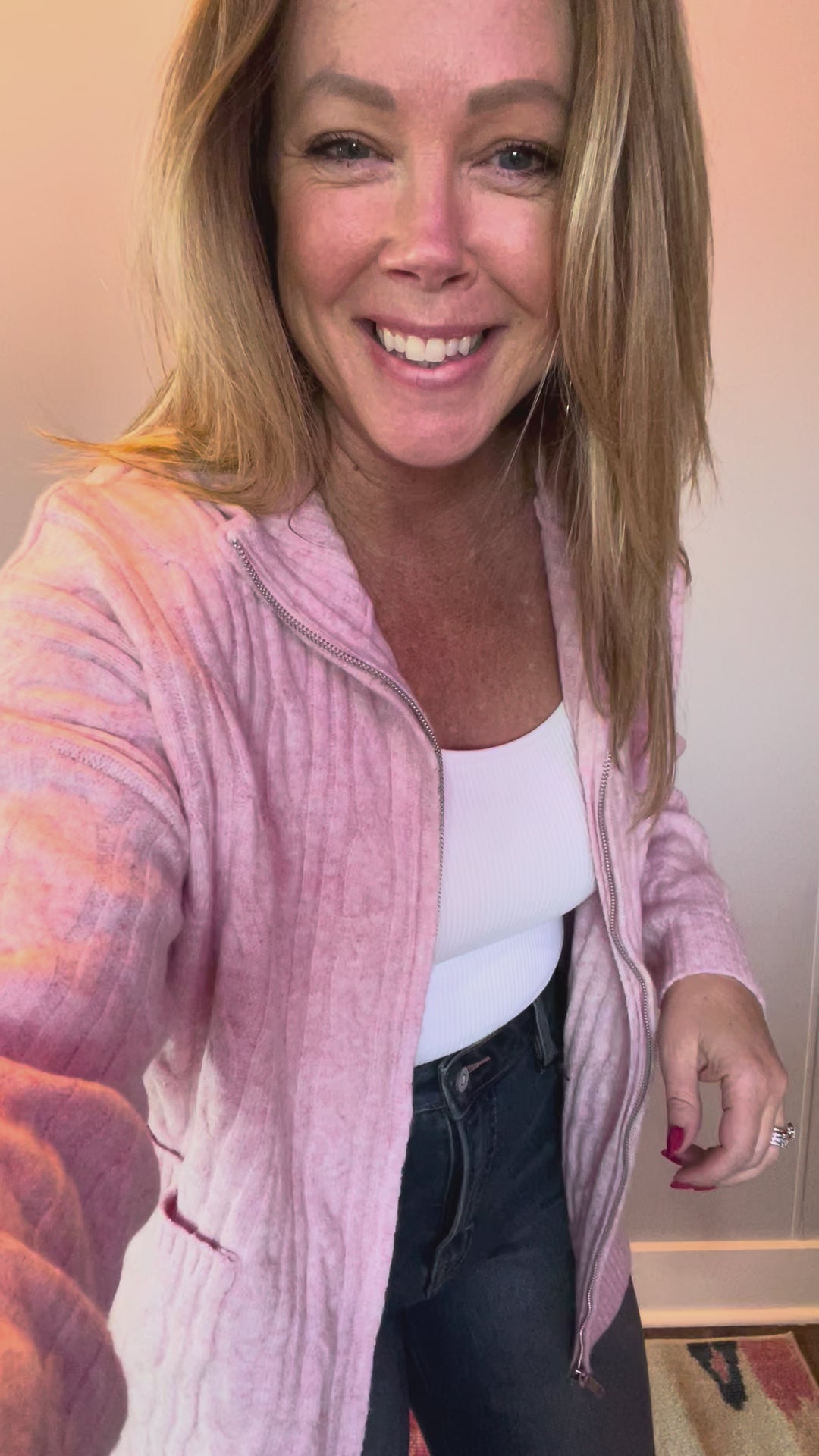 Chalet Charm Cable Knit Zip Jacket in Pink