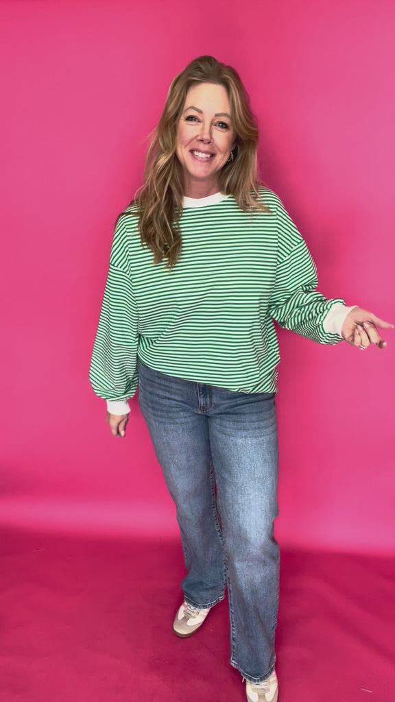 Coastal Cool Striped Pullover in Green
