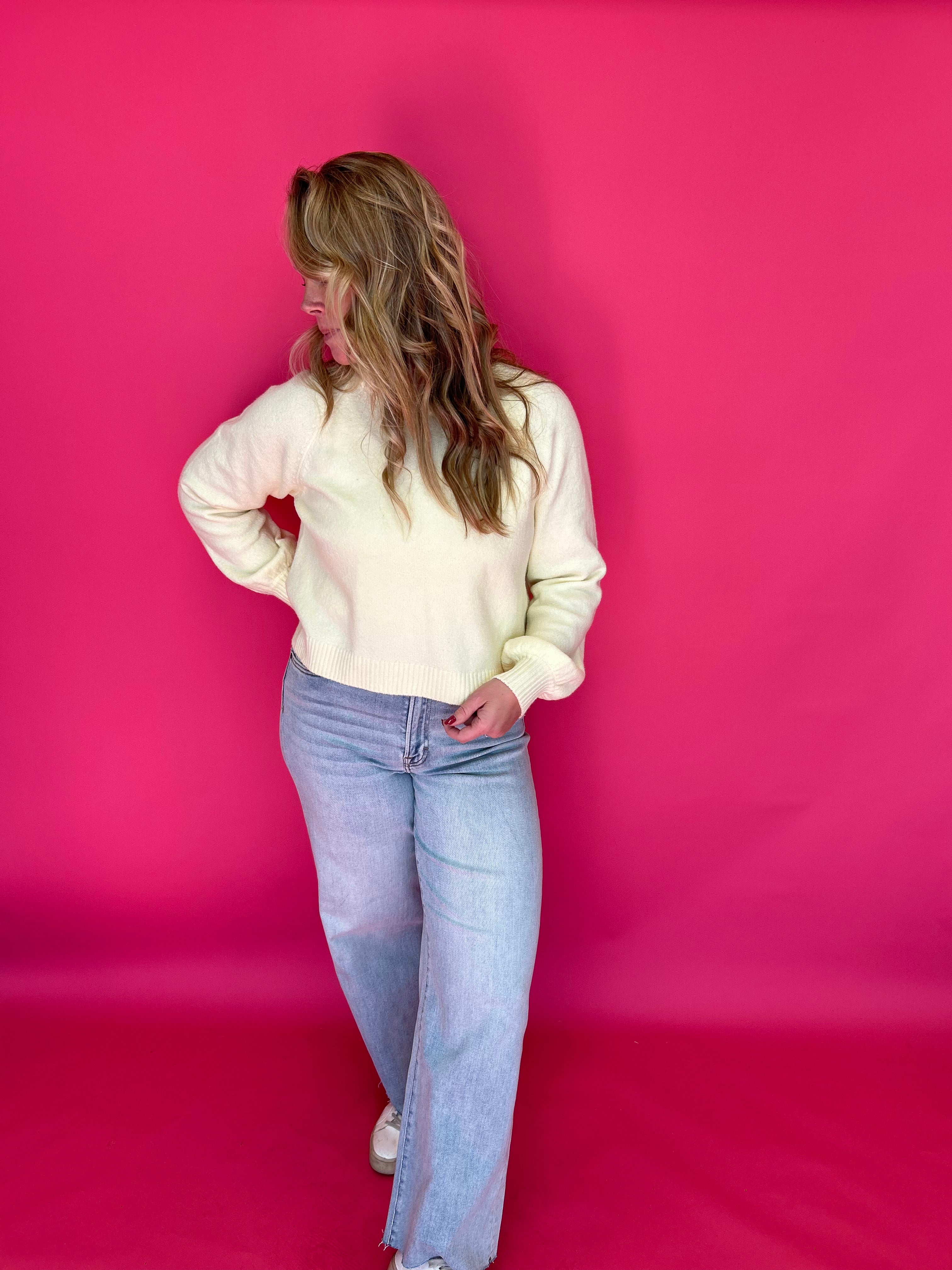 Soft, airy, and impossible not to love—this sweater feels just as good as it looks. Crafted from a light and lofty cotton-blend knit, it features beautiful texture with a relaxed silhouette that drapes effortlessly. The subtle high-low hem adds a modern touch, making it the perfect throw-on layer for breezy days and laid-back nights.