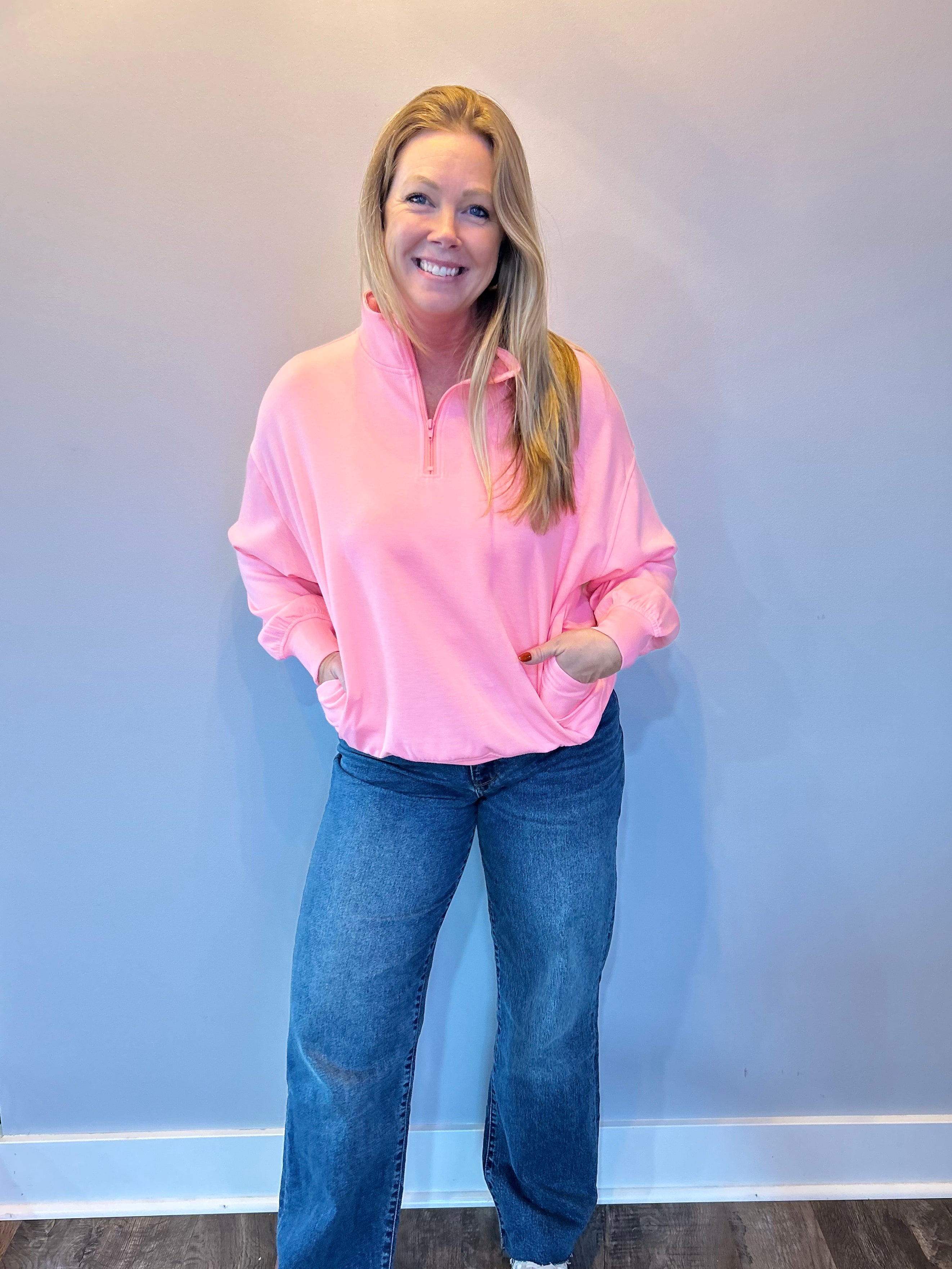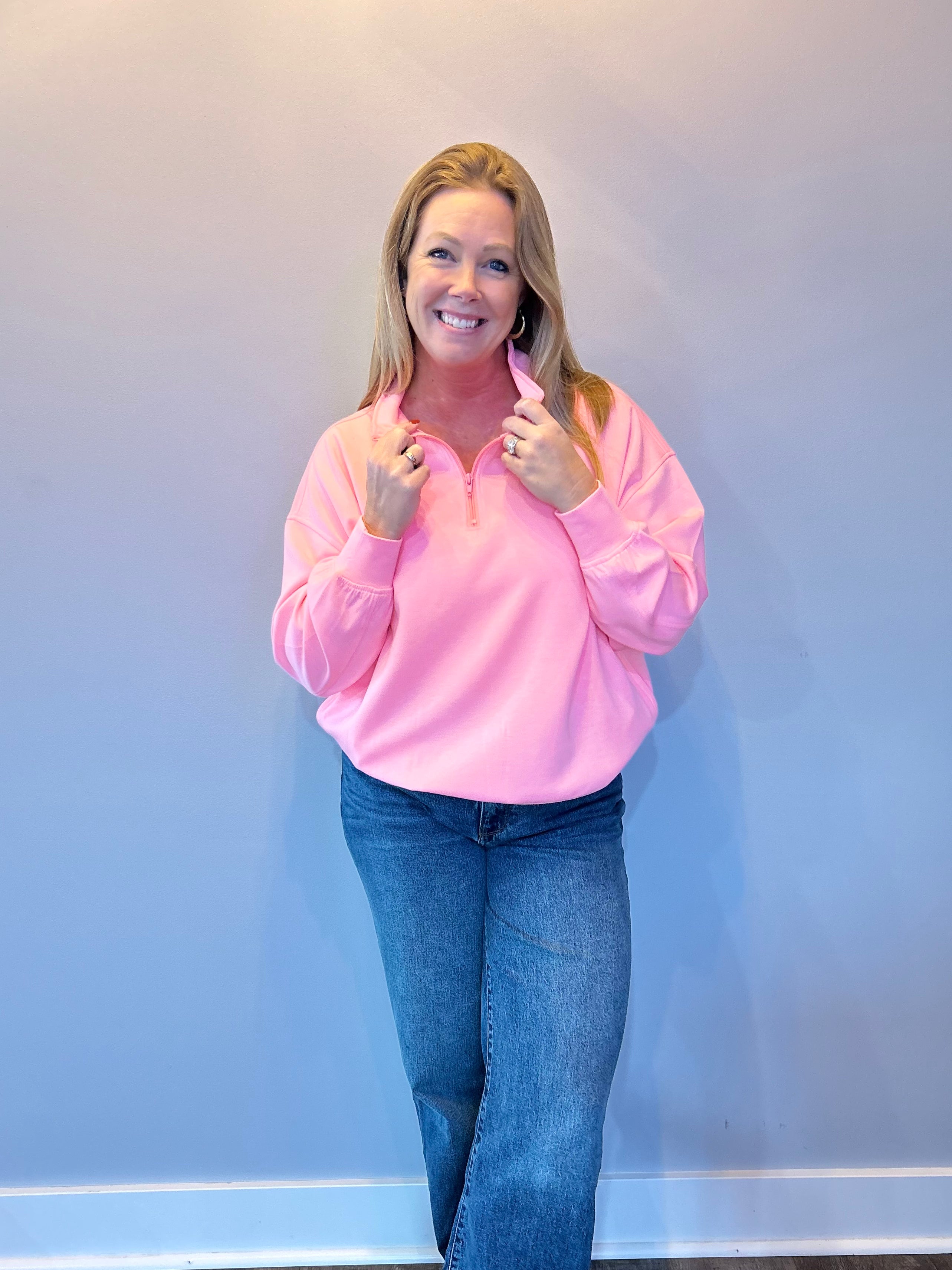 Cool Comfort Scuba Half Zip Pullover in Bright Pink