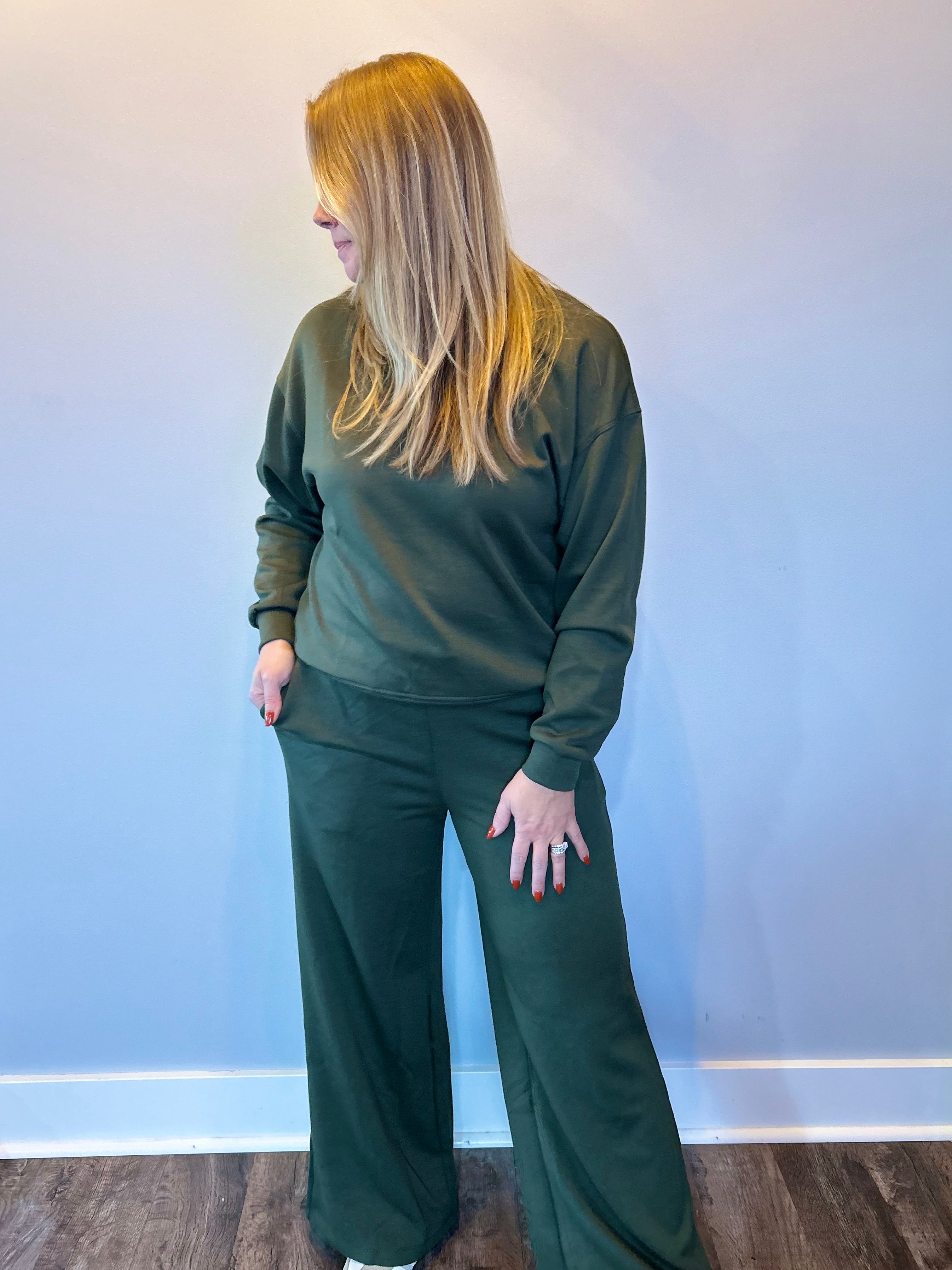 Cozy Chic Pullover & Pant Set in Dark Olive