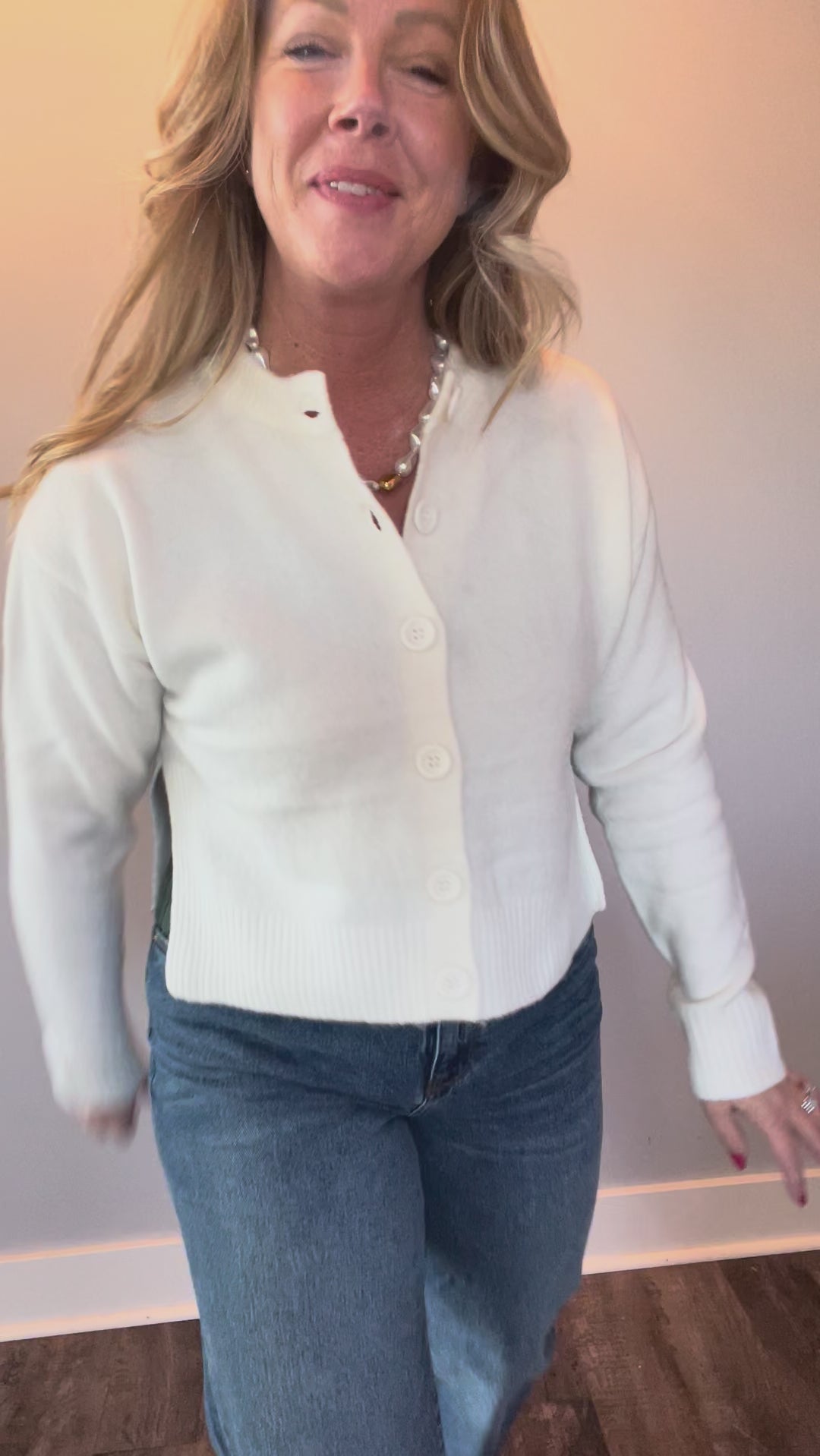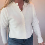 Cozy Classic Wool Blend Cardigan in White