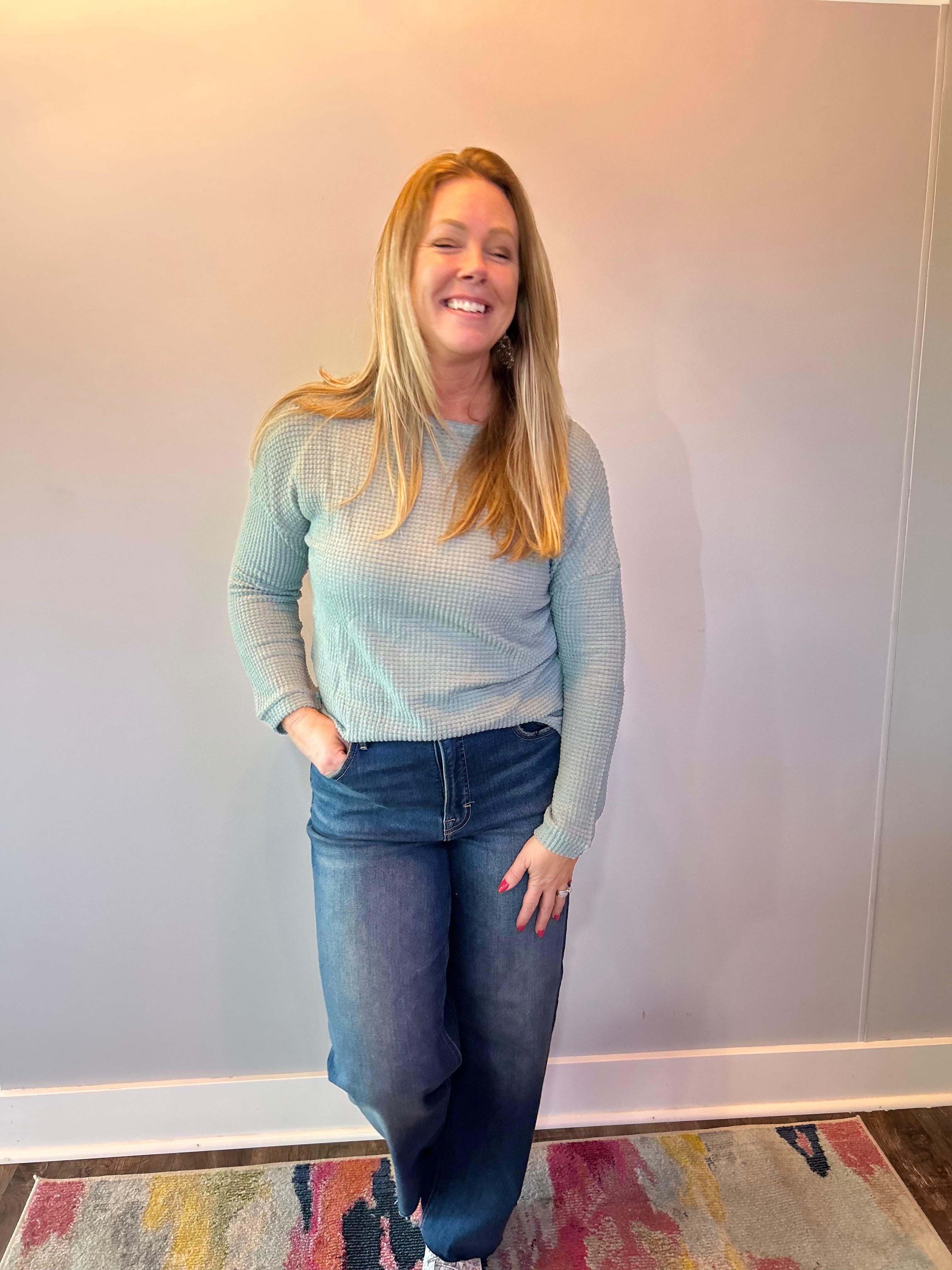 Wrap yourself in effortless comfort with our Waffle Knit Drop Shoulder Long Sleeve Top 🤍. Designed with a soft, textured waffle knit and a relaxed drop shoulder fit, this top brings a perfect mix of cozy and chic. Whether you’re lounging at home or styling it with denim for brunch, it’s your go-to for laid-back sophistication.