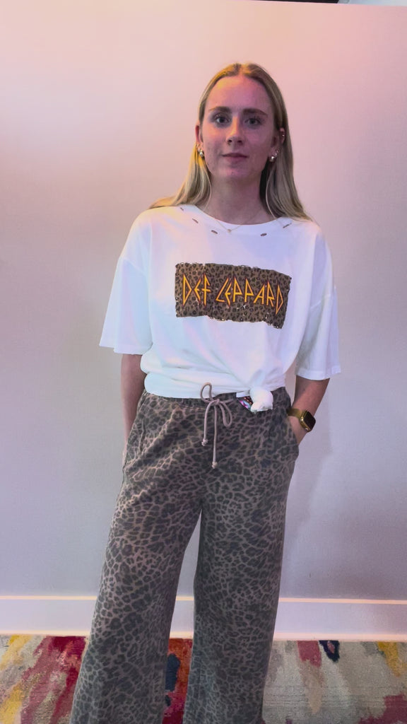 Unleash your inner rock goddess with the Def Leppard leopard print graphic Tee, an edgy, oversized graphic tee that brings major vintage vibes. Featuring a bold Def Leppard leopard print graphic on a soft mineral-washed fabric, this tee is all about laid-back attitude with a side of glam rock.