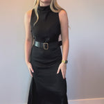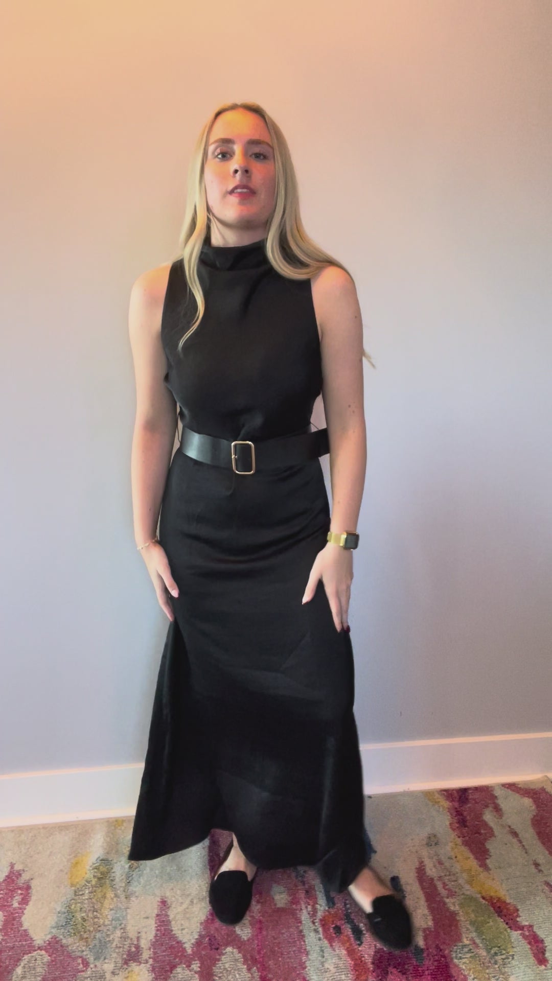 Timeless, elegant, and effortlessly flattering — the Effortless Grace High Neck Belted Dress is your go-to for any special occasion. Featuring a flowy silhouette with a cinched waist tie, this sleeveless beauty combines sophistication with comfort. The high neckline and draping fabric create a polished look that moves beautifully with every step.