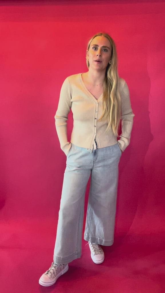 Because neutral doesn’t mean boring. This long sleeve ribbed top is the definition of effortless. It’s soft, stretchy, and perfect for layering or wearing on its own when you want that comfy-but-cute look.