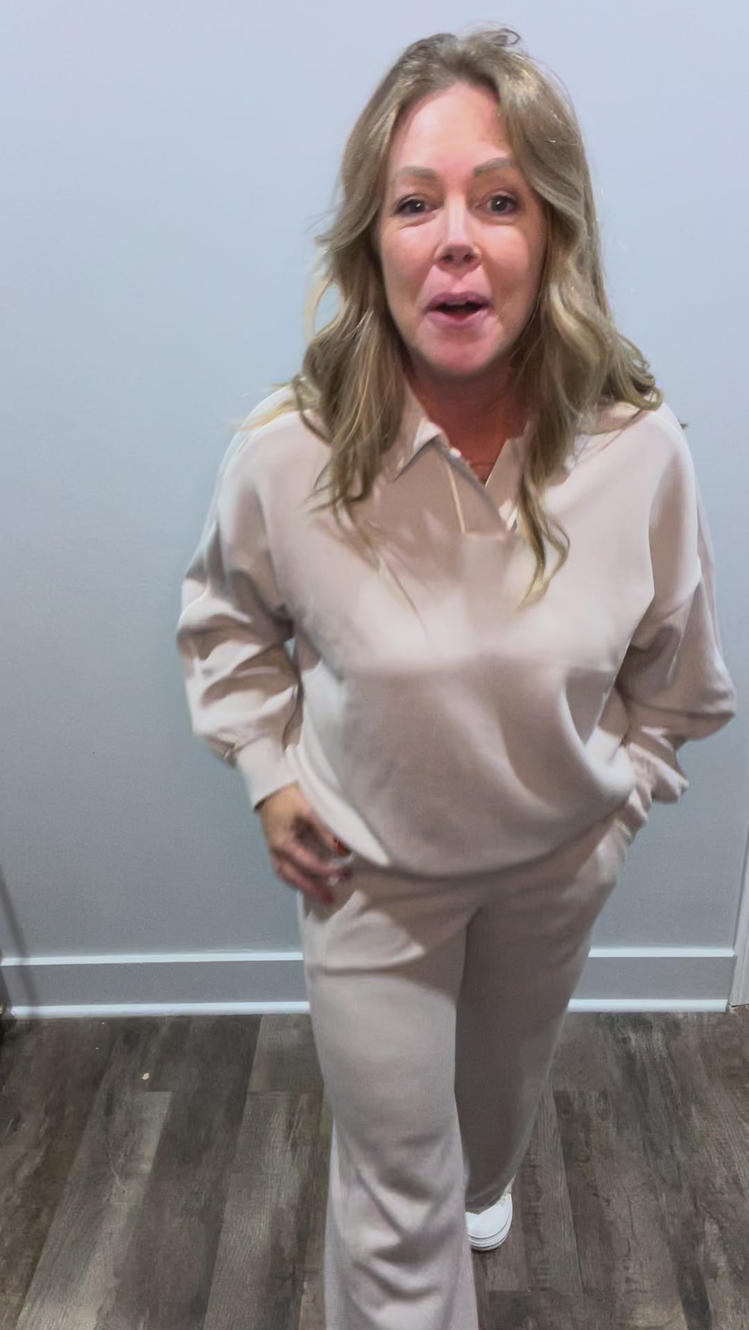 Polished Comfort Modal Scuba Polo Top with Piping in Taupe