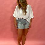 The Everyday Hi-Rise Denim Short is made using our non-stretch denim, given a special wash for that worn-in softness you love. We love it with a flowy top or any essential tee.