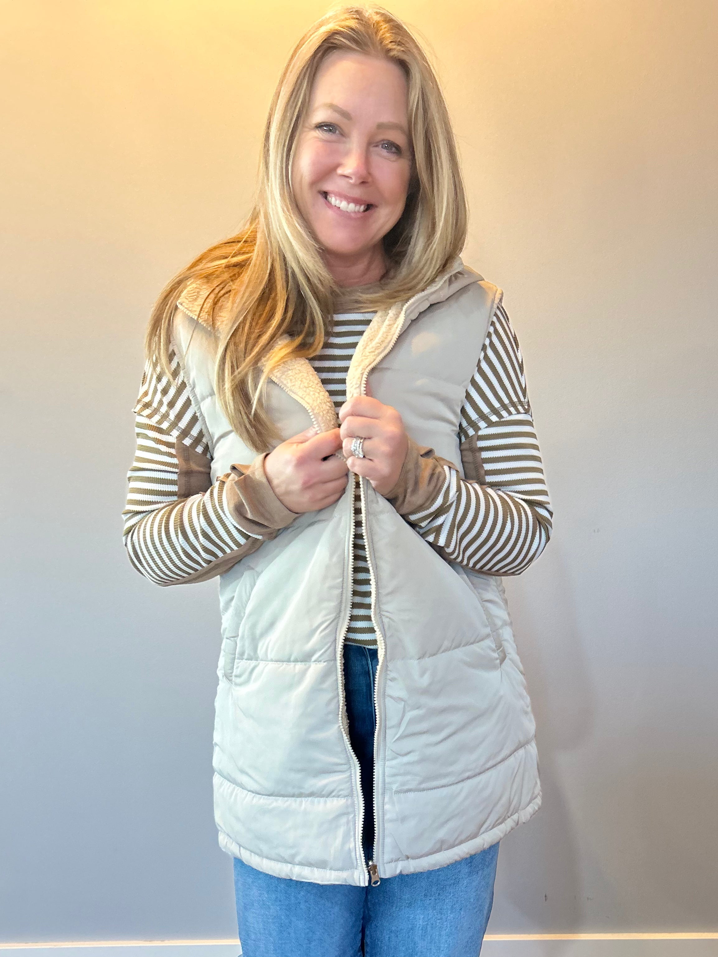 The statement layer everyone needs when the temps drop and the outfits need a little extra. This cozy-chic coat features plush faux fur striping that adds instant glam, while the zip-front and open pockets keep it practical for real life (school runs, office days, and holiday shopping included).