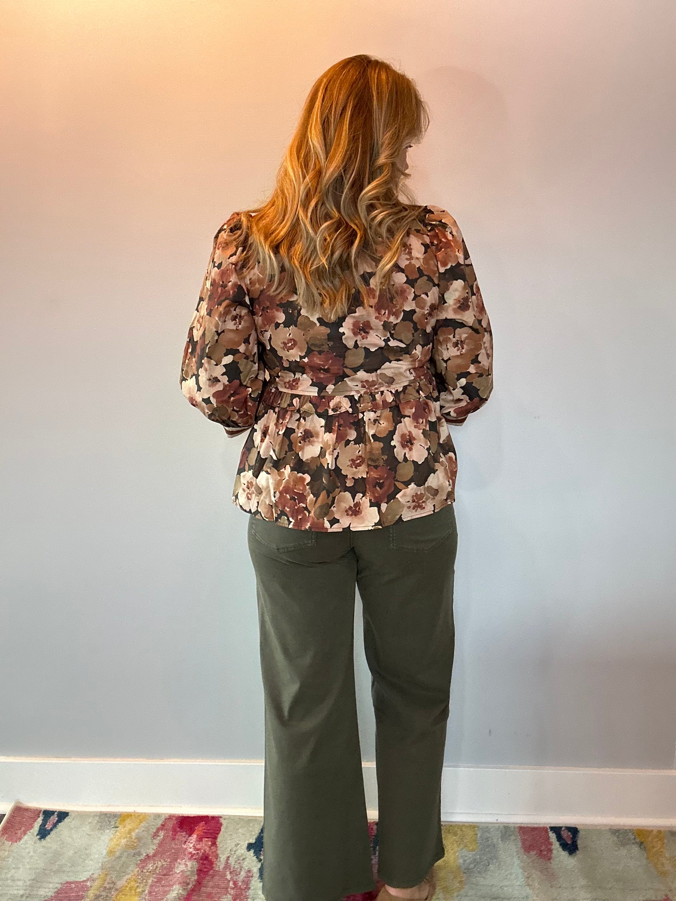 Romantic and feminine, the Garden Grace Peplum Blouse is the perfect blend of charm and sophistication. This floral print top features delicate pintuck detailing and a tie-front closure, complemented by soft ruffle trim along the chest and waist for a flattering, flowy silhouette. Lightweight and airy, it’s ideal for everything from brunch dates to office days.