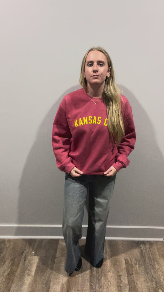 Show your hometown pride in bold style with this red sweatshirt featuring “Kansas City” across the chest in striking gold lettering. Designed for both comfort and spirit, this unisex pullover is perfect for game days, tailgates, or cozy casual wear.