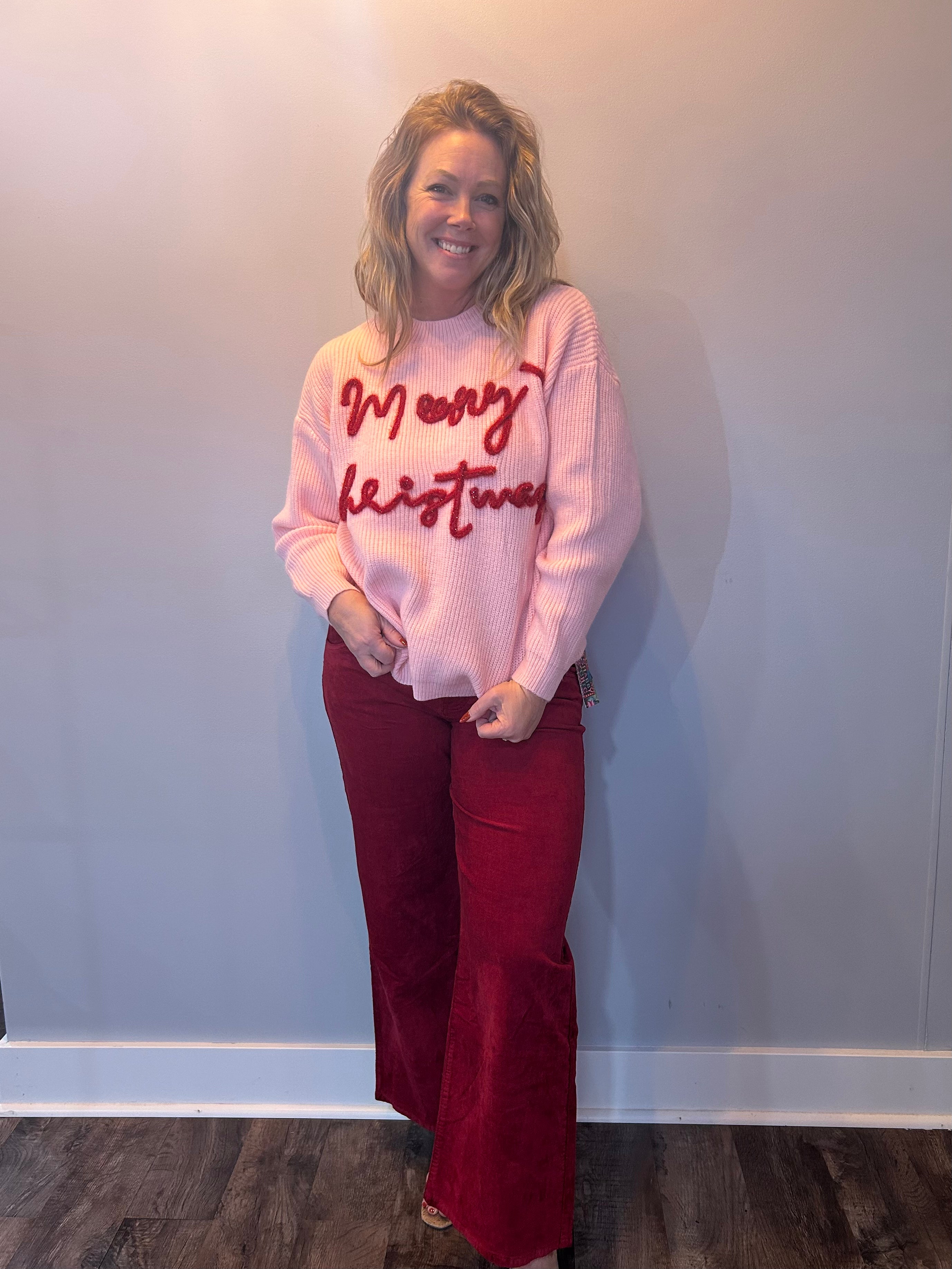 Make way for the pants that are about to steal every show you walk into. These velveteen beauties bring all the luxe holiday vibes with none of the discomfort — thank you, very stretchy fabric. The high-rise fit smooths and flatters, while the wide straight leg (with just a kiss of flare) gives you that effortlessly elongated silhouette. And the bold red? Oh honey, she’s not shy.