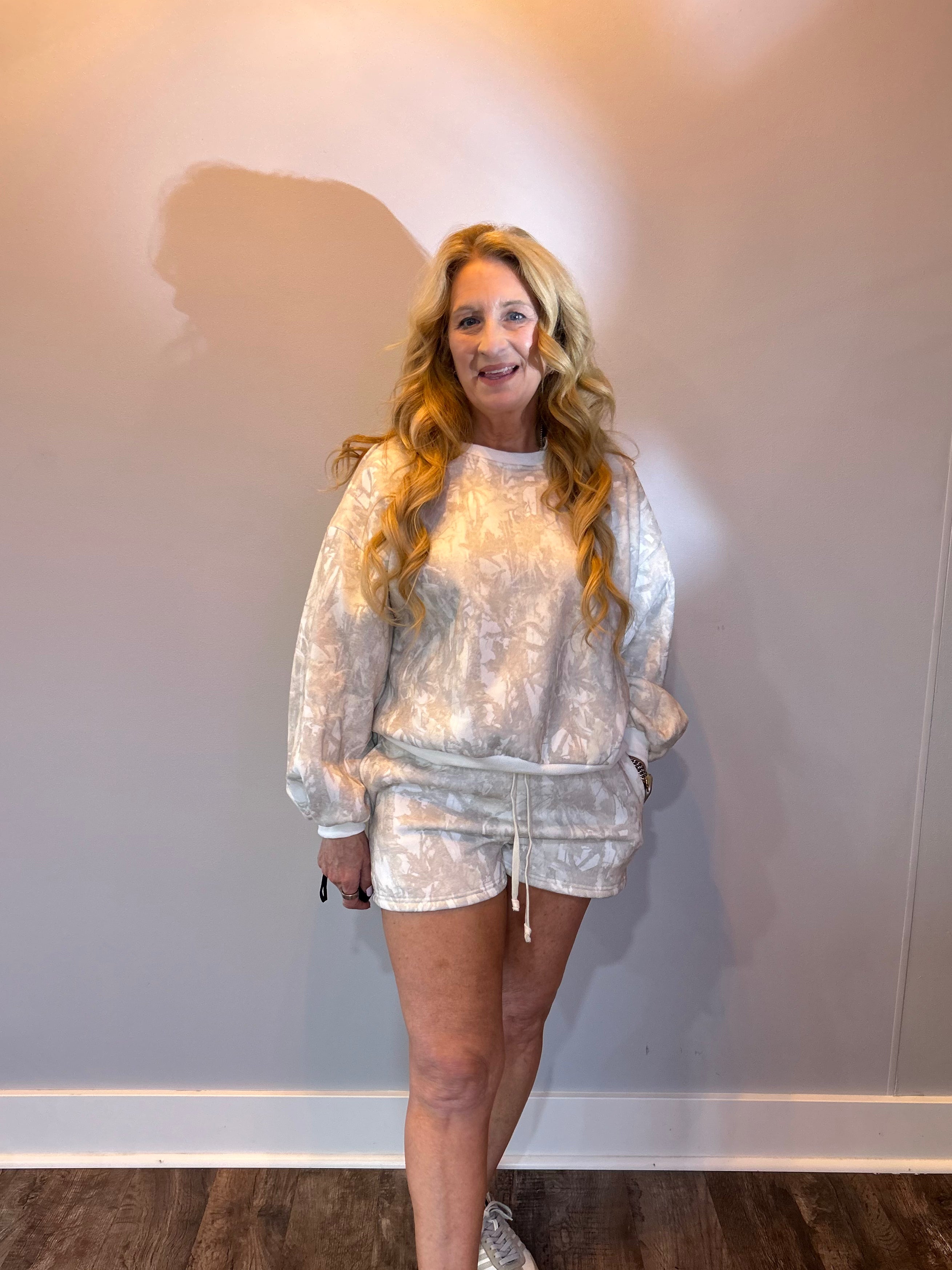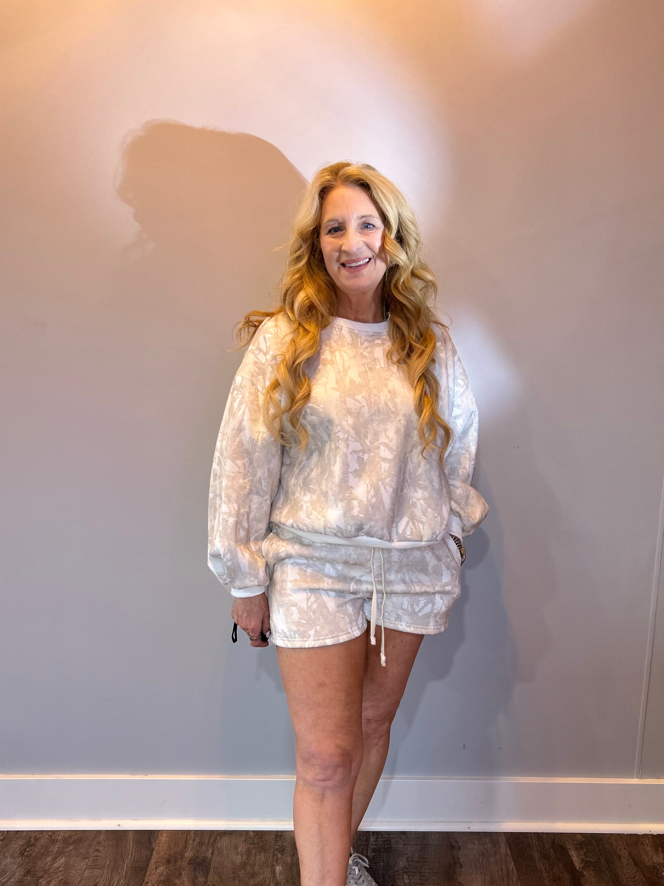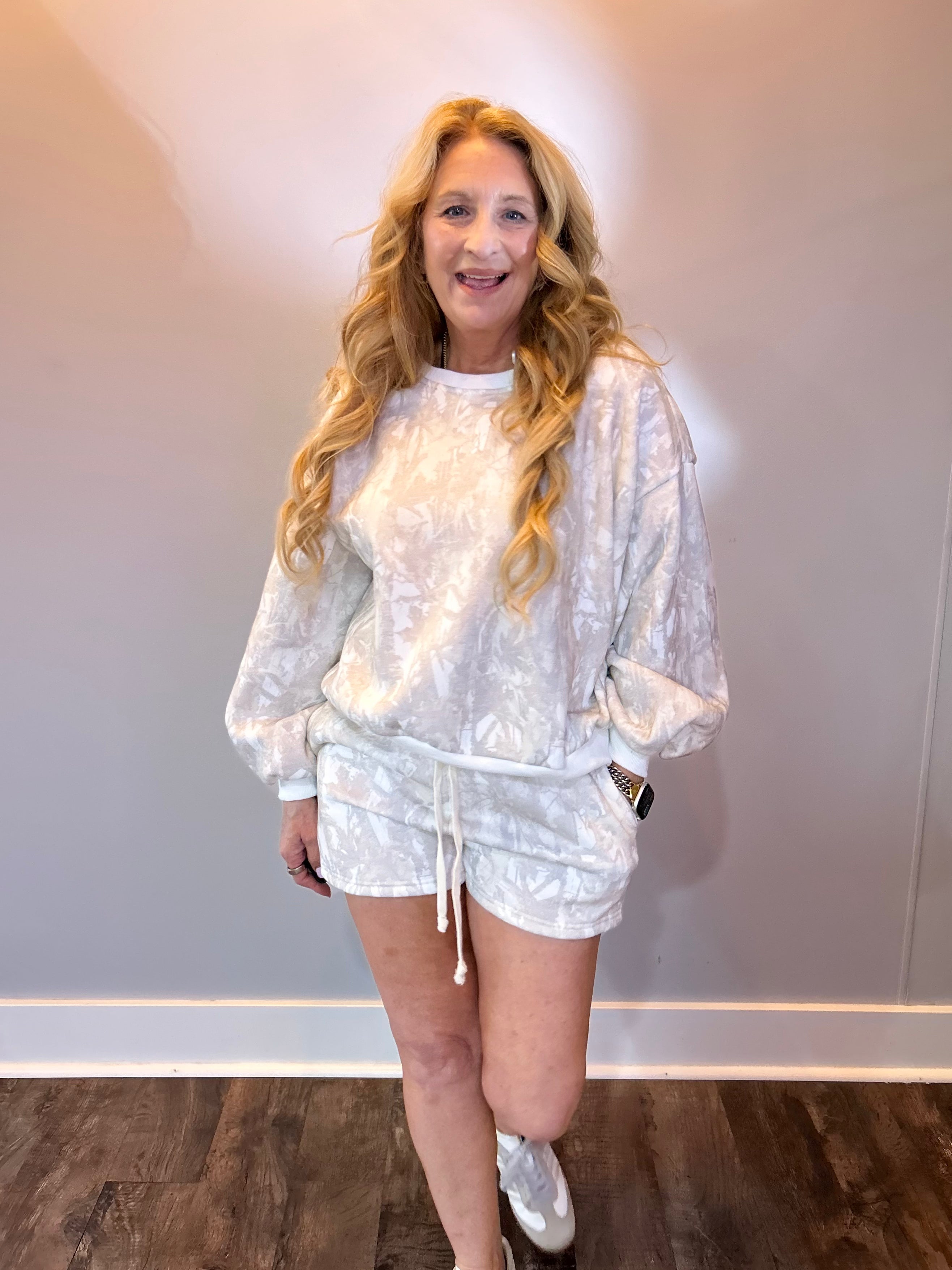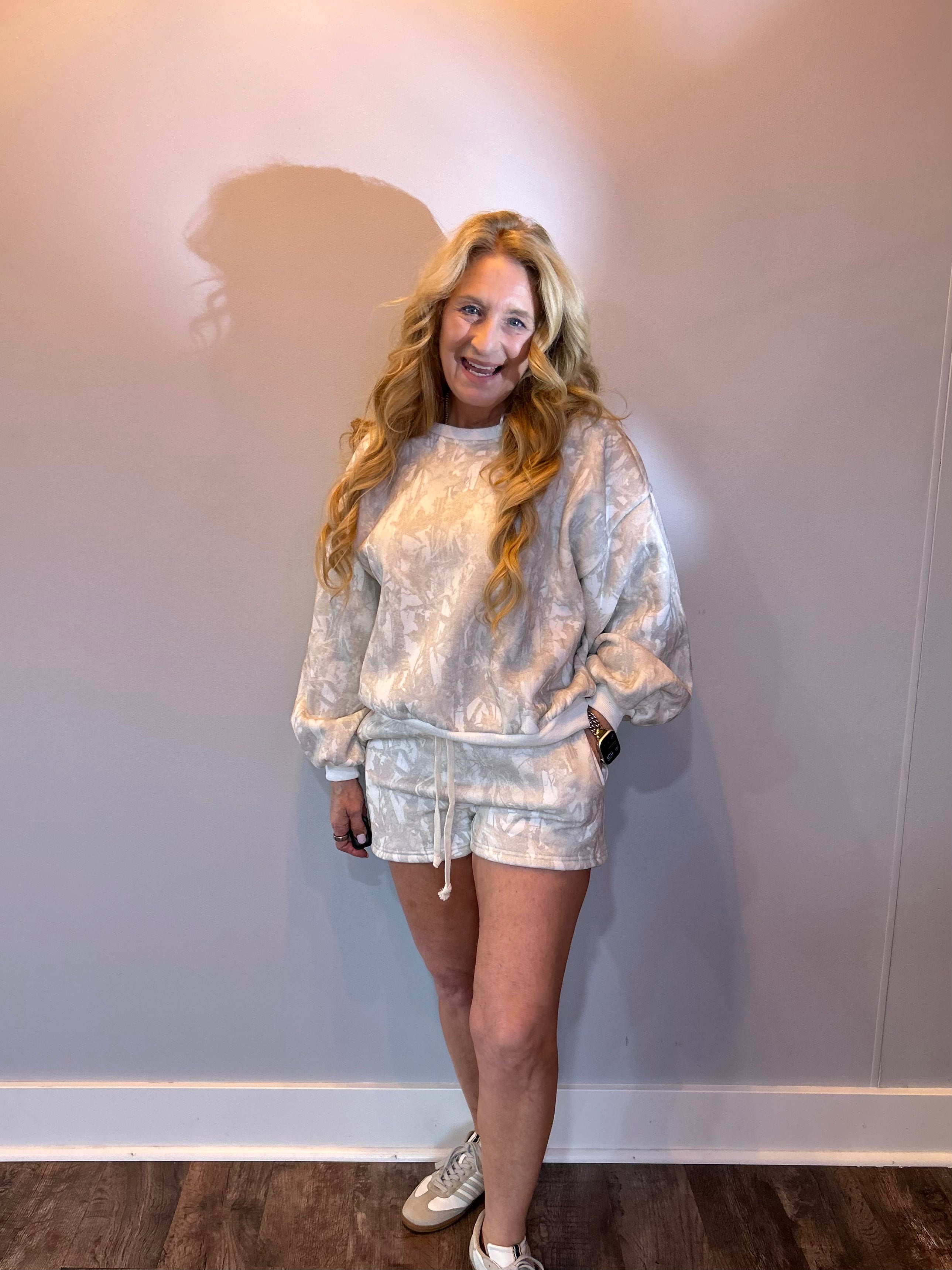 Unwind in effortless comfort with the Leaf Me Cozy Lounge Set. This relaxed, two-piece set features a soft balloon-sleeve top and drawstring shorts in a dreamy neutral leaf print that channels laid-back, boho-inspired vibes. Whether you’re lounging at home, running errands, or heading out for a coffee date, this cozy set keeps you cute and comfy all day long.