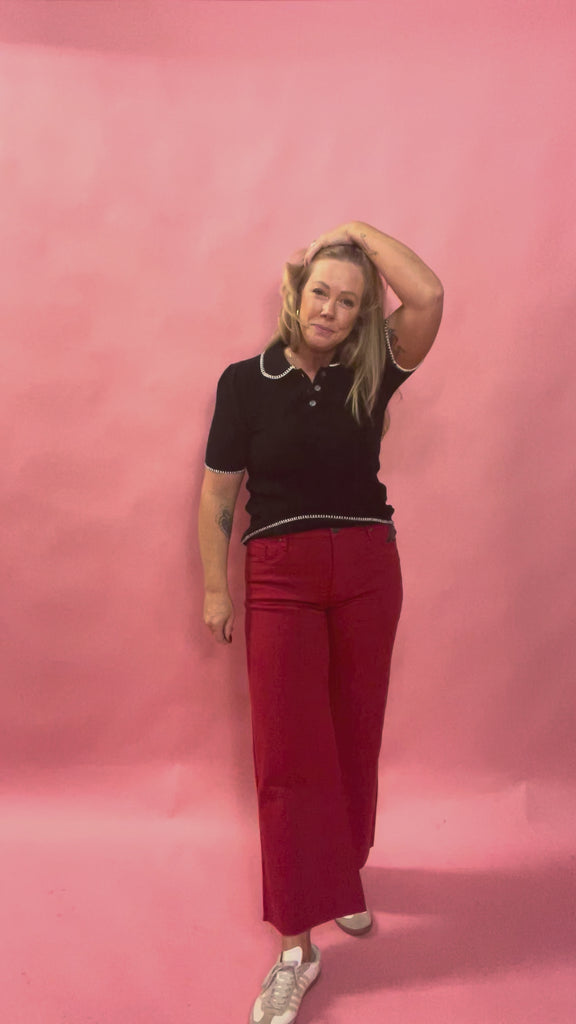 Meg Fab Ab Ruby Red Wide-Leg Jeans