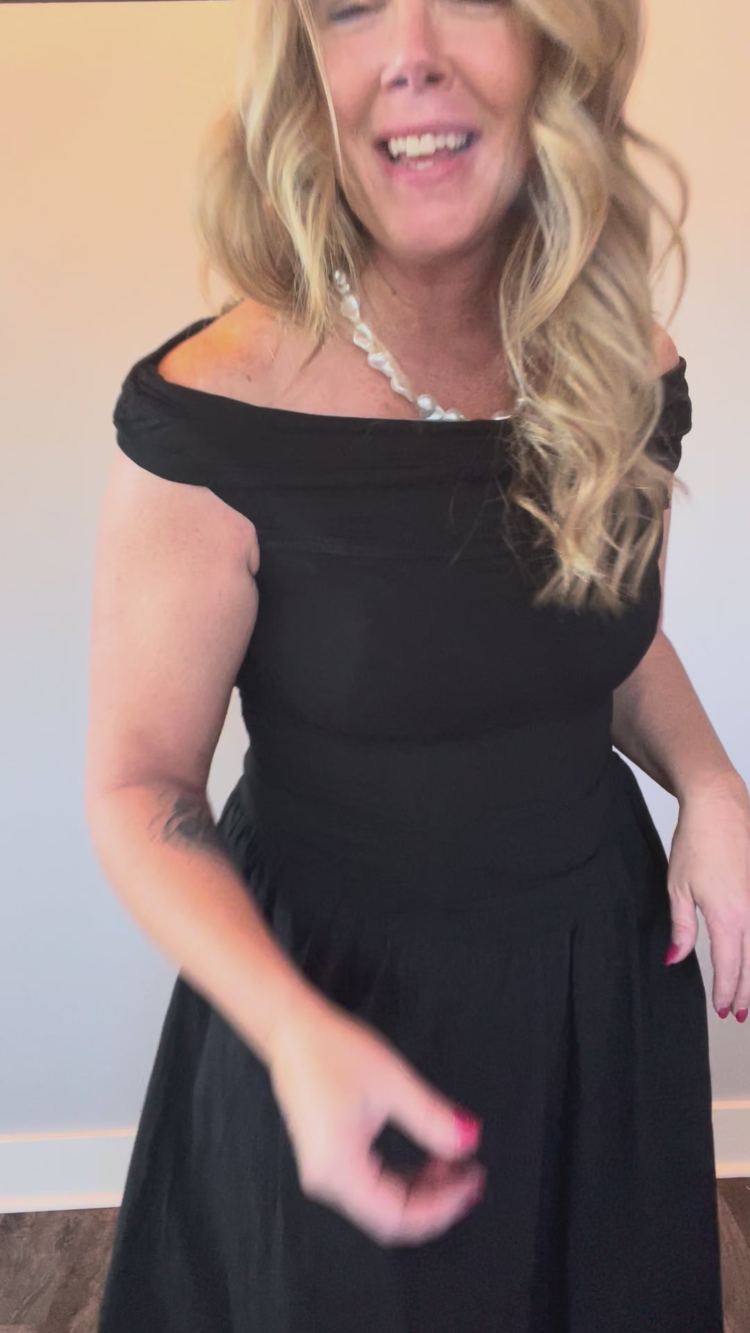 Elegant, timeless, and undeniably chic — the Midnight Muse Off-Shoulder Dress is made to turn heads. Designed with a flattering basque waist that cinches and contours your shape, this black off-shoulder dress blends sophistication with a hint of allure. Perfect for cocktail parties, date nights, or any occasion that calls for classic glamour.