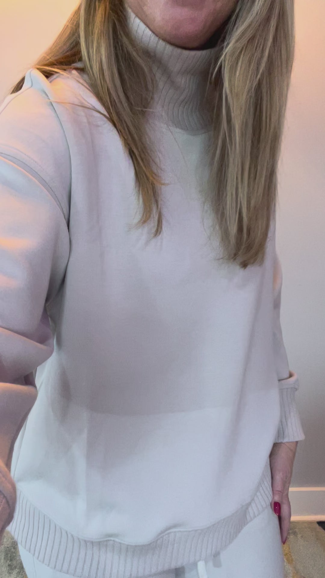 Elevated Ease Ribbed Mock Neck Pullover in Taupe
