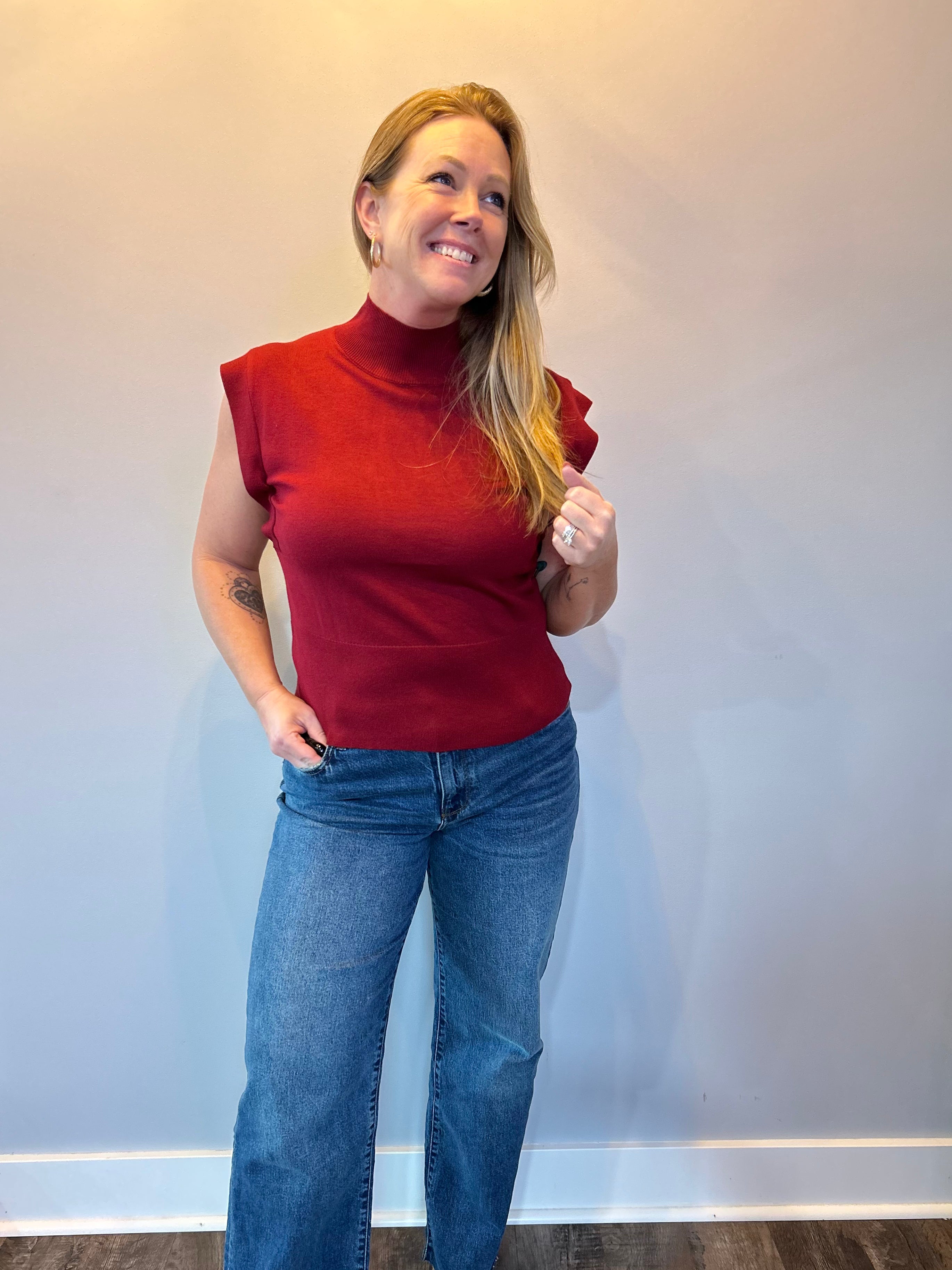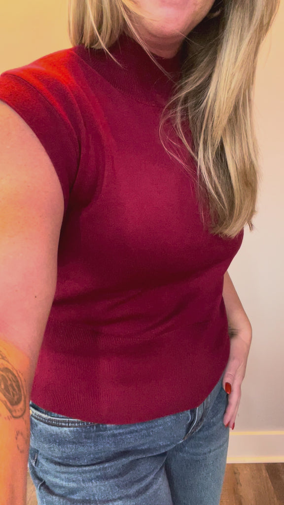 Sleek & Simple Mock Neck Knit Tank in Burgundy