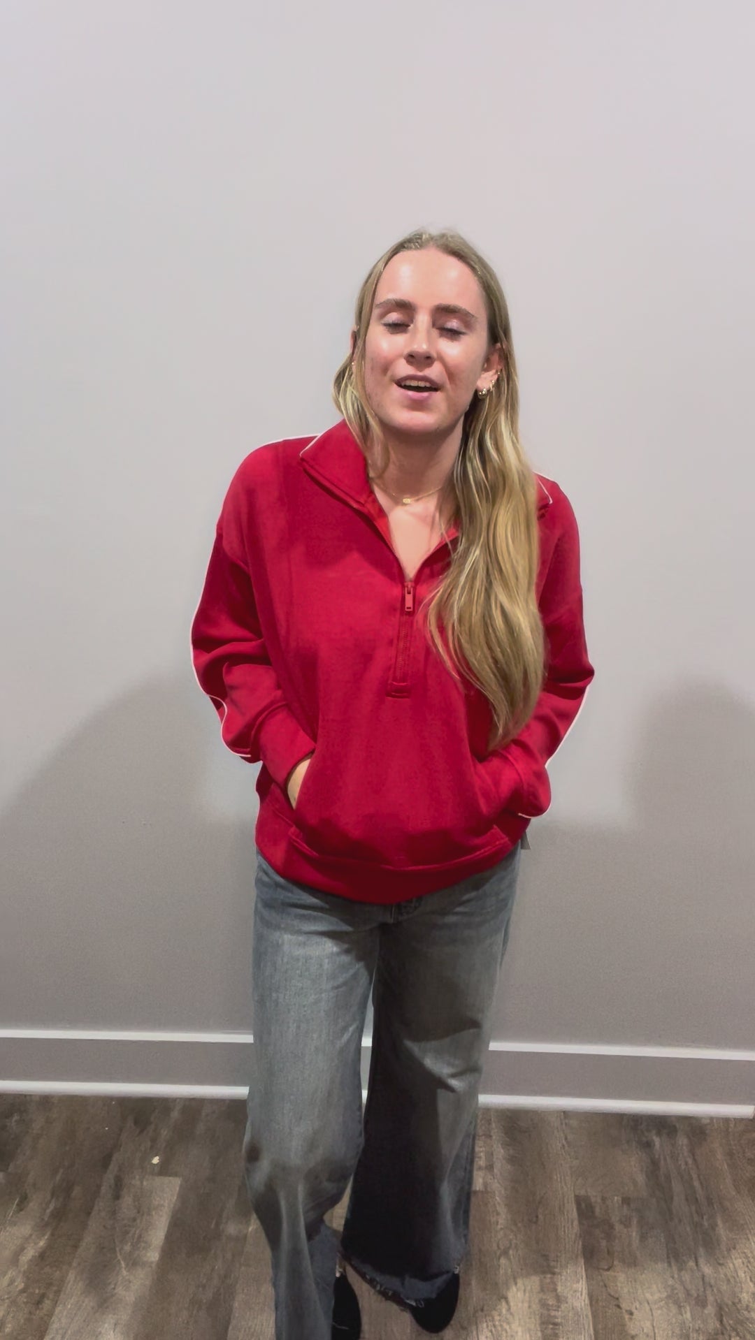 Sport Luxe Scuba Quarter Zip Pullover in Red
