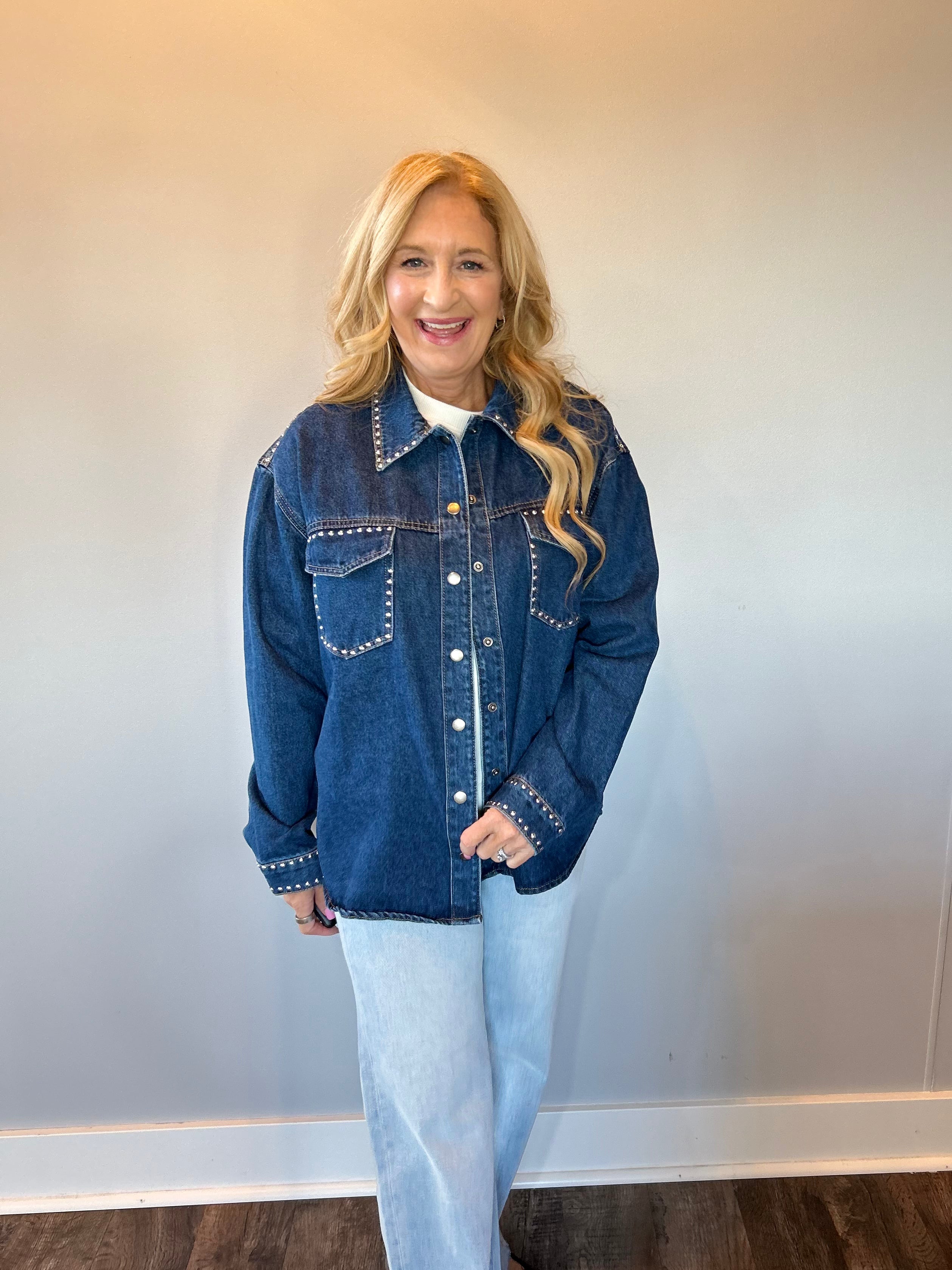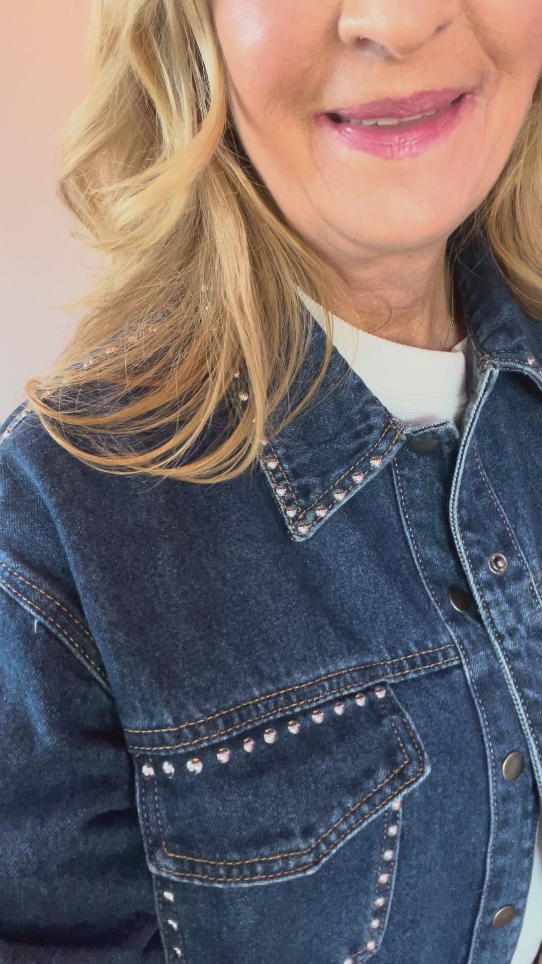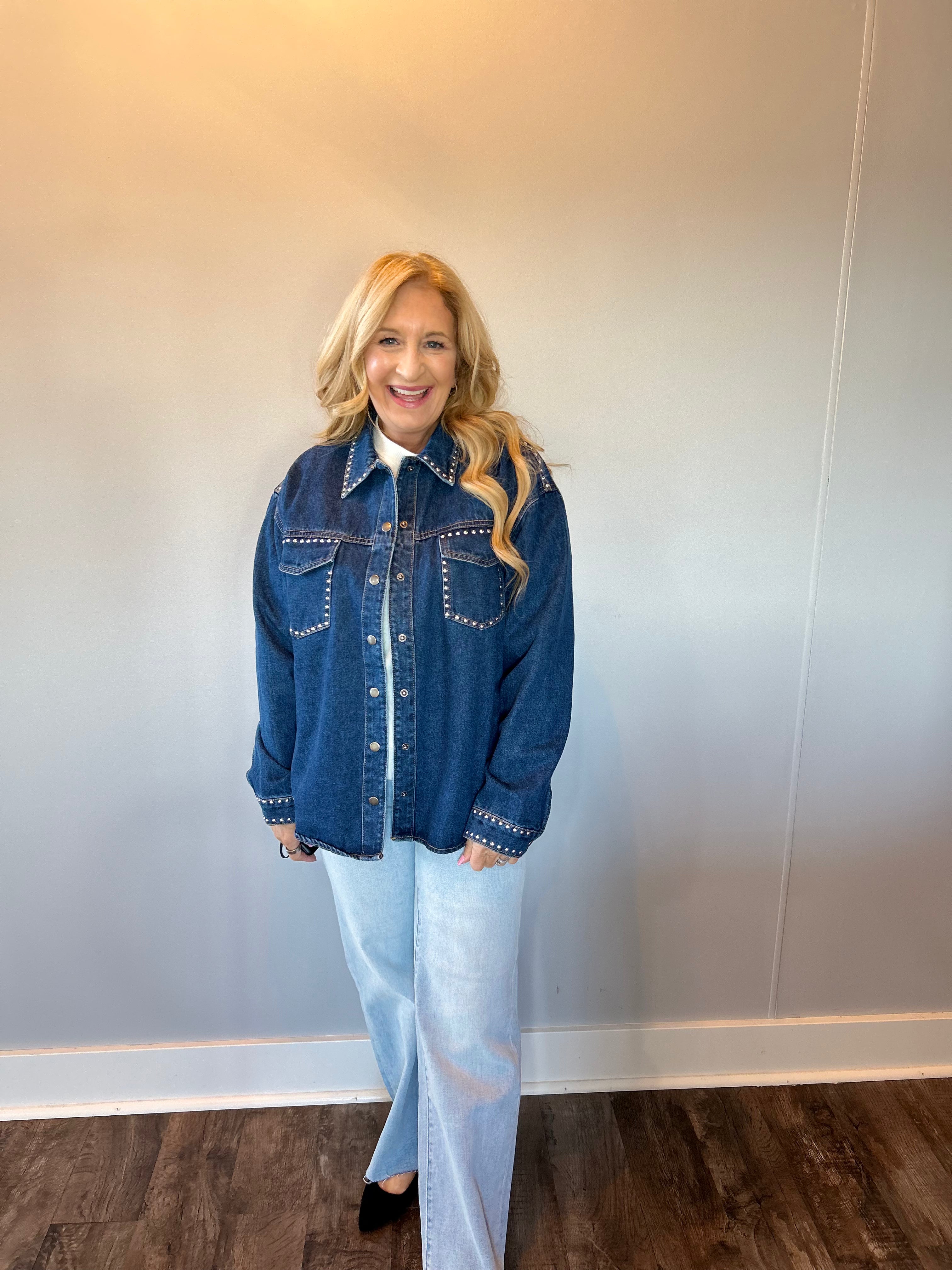 Make a statement with the Star Status Studded Denim Jacket, where classic meets edgy. Crafted from 100% cotton denim, this jacket features shimmering stud details that add the perfect touch of glam to any outfit. Designed with functional front buttons, it’s as practical as it is stylish—layer it over dresses, tanks, or your favorite graphic tee for that effortlessly cool vibe.