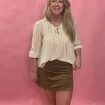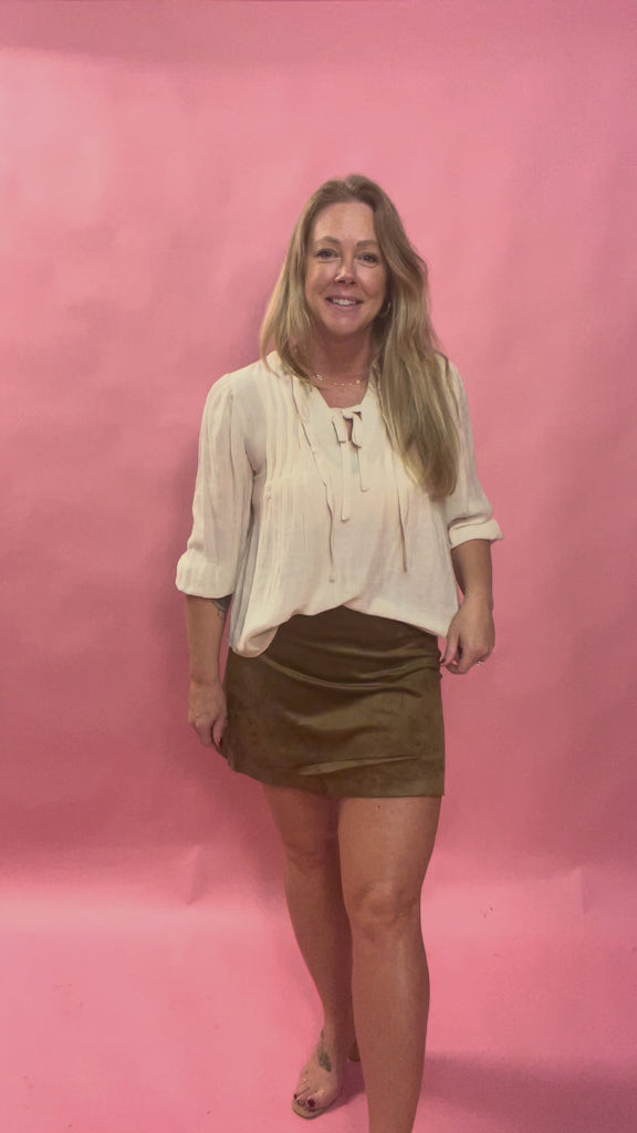 Soft, flowy, and full of flattering detail — the Willow Blouse is an easy favorite. This lightweight woven top features a feminine V-neckline with a playful front tie, pleated detailing for a touch of polish, and breezy 3/4 sleeves with elastic cuffs. With a relaxed fit and back yoke for subtle structure, it’s the kind of piece that goes with everything — and makes you feel amazing doing it.