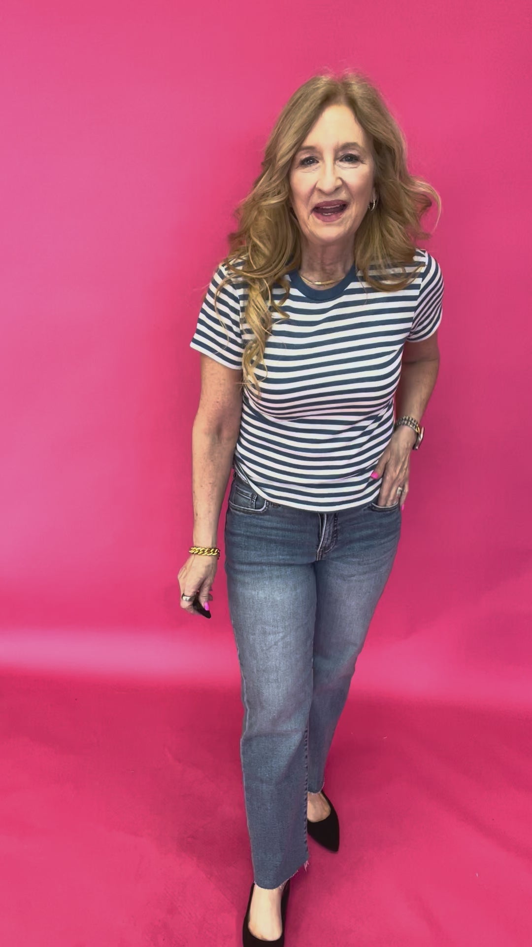 This is one of those throw-on-and-go tees that somehow always looks pulled together. Stripes really do the work for you. 😉