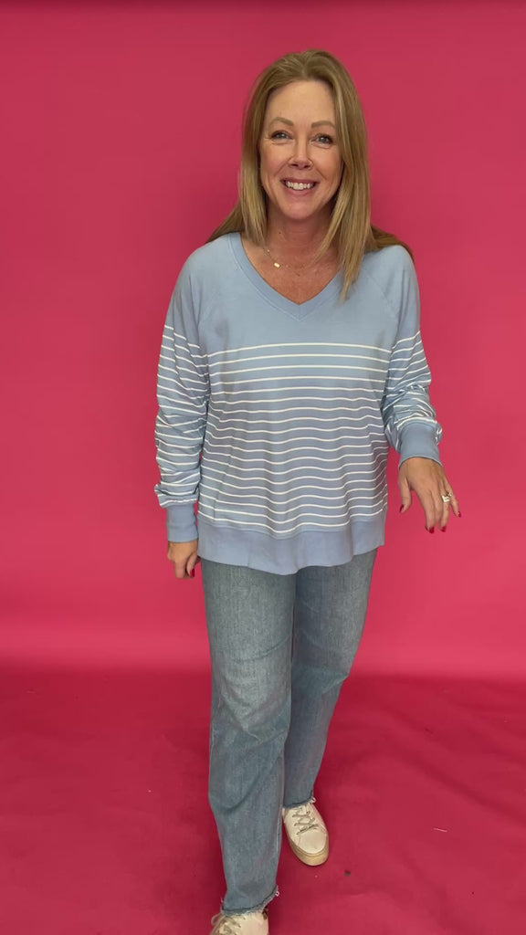 Your new off-duty favorite just showed up—and she’s soft-soft. This easygoing V-neck sweatshirt is made from Z Supply’s signature baby French terry, giving it that perfectly broken-in feel you’ll want to live in. The relaxed fit and classic stripe pattern make it cute enough to wear out, comfy enough to lounge all day.