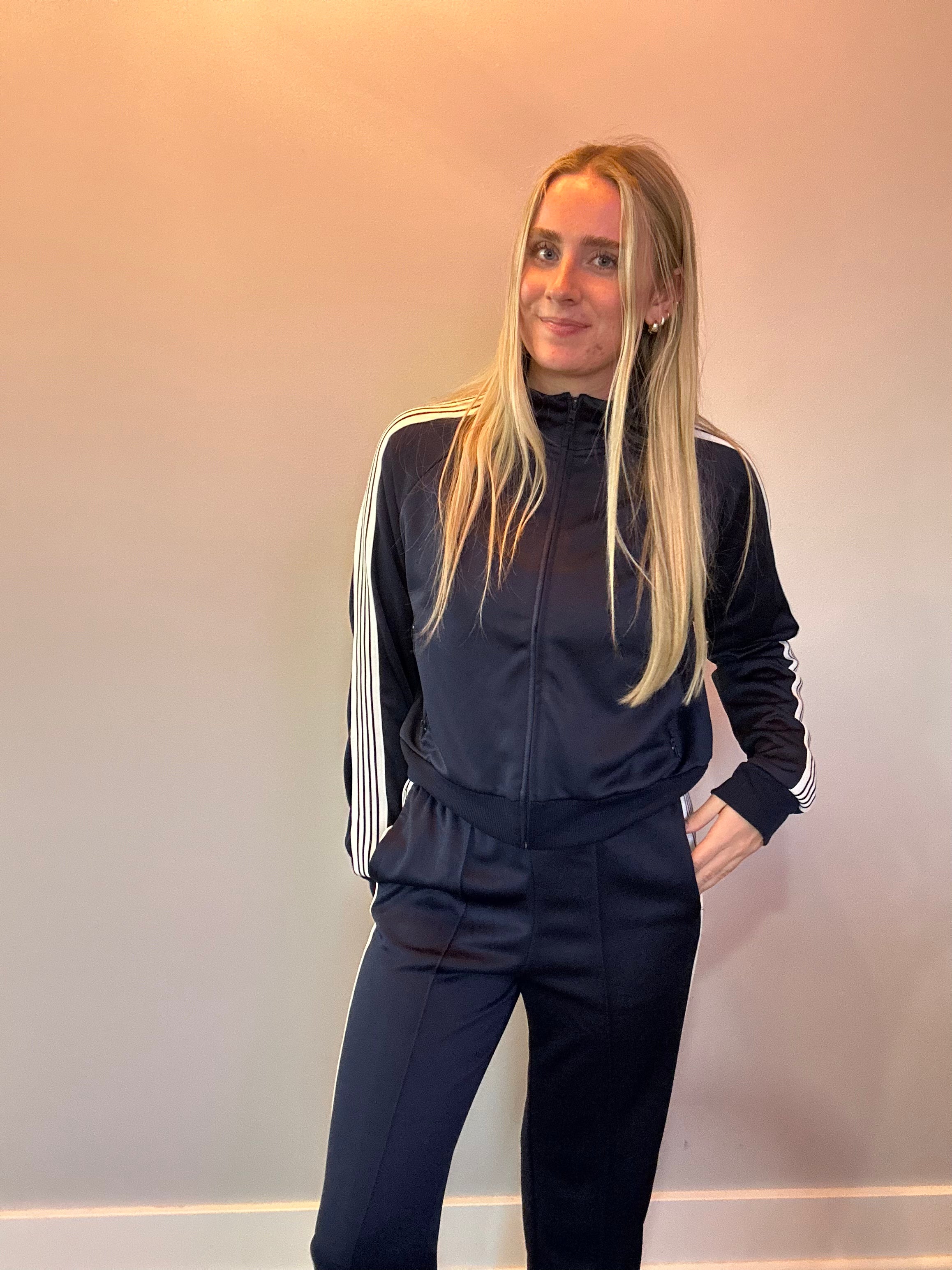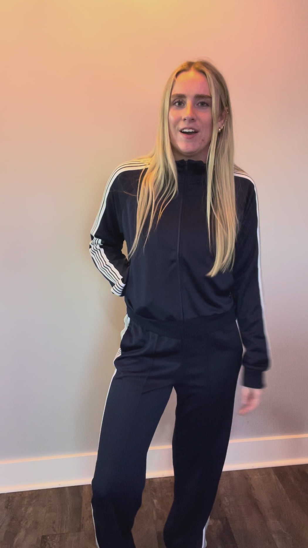 Whether you're lounging, running errands, or heading to brunch, these wide-leg track pants combine retro flair with modern comfort.