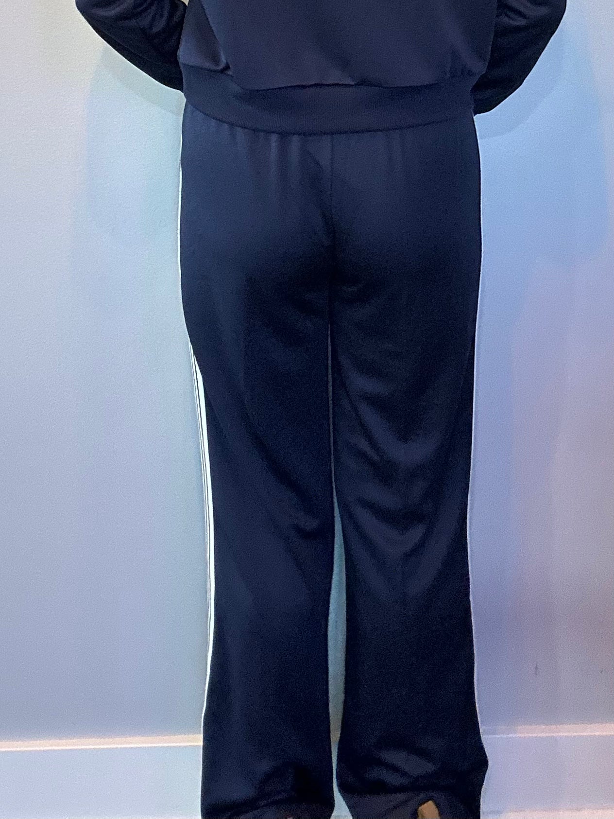 Wide-Leg Varsity Stripe Track Pants in Navy