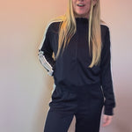 ✔️ Bold varsity side stripes add a sporty-chic detail