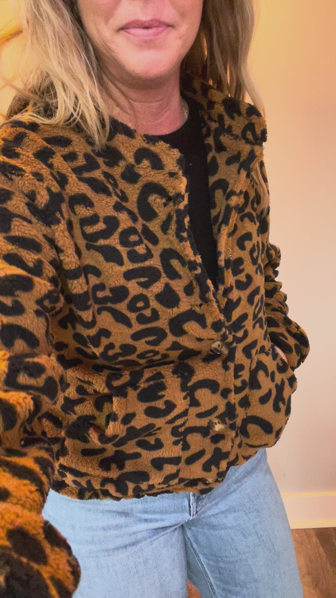 Snuggle up in style with the Wild Cozy Leopard Plush Jacket. Made from ultra-soft fleece with a bold leopard print, this short button-up jacket delivers the perfect mix of cozy comfort and fierce fashion. Its plush texture, cropped length, and easy button-front design make it your go-to layer for chilly days — because staying warm shouldn’t mean sacrificing style.